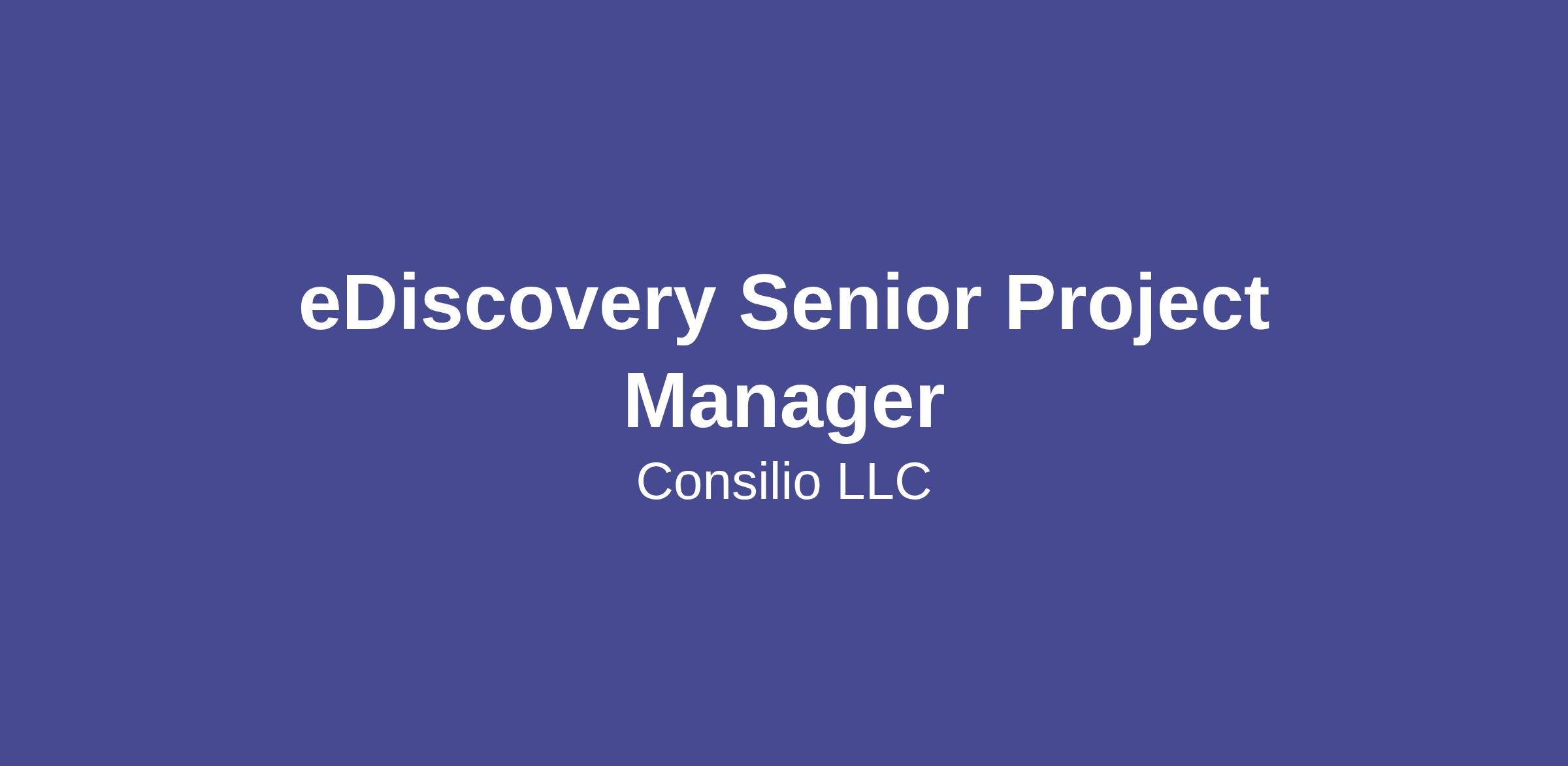 Consilio, LLC is an EEO/Affirmative Action Employer and does not discriminate on the basis of race, color, religion, sex, sexual orientation, gender identity, national origin, protected veteran status, disability or any other legally protected status.