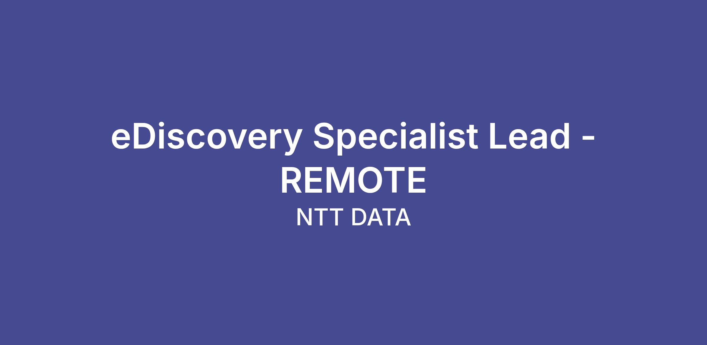 We are currently seeking a eDiscovery Specialist Lead - REMOTE to join our team in Arlington (REMOTE), Virginia (US-VA), United States (US).