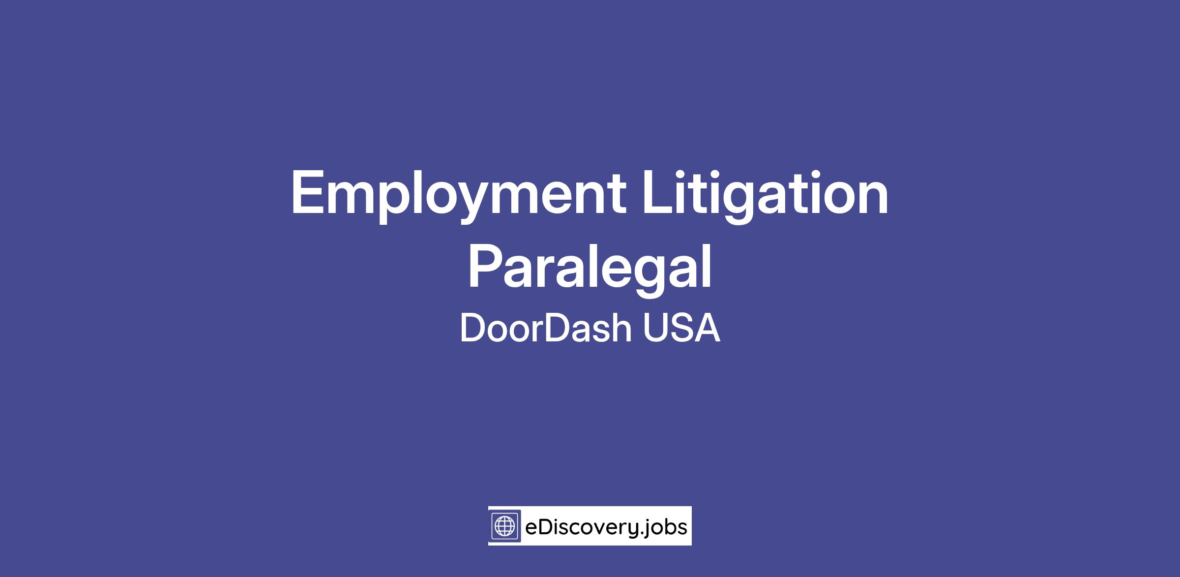 DoorDash is hiring an exceptional Employment Litigation Paralegal to support our employment litigation docket at an exciting time for our rapidly growing business. You will be a part of the Legal team’s Employment Litigation group, and responsible for owning an important docket of litigation. You’ll work closely with our in-house employment litigator and coordinate with outside counsel as needed. You will own day-to-day case management - calendaring, filings, discovery, subpoenas, eDiscovery, witness and deposition prep, hearing/trial/arbitration support - and keep matters moving to smart, timely resolutions. You’ll also maintain our matter management systems, track metrics and deadlines, and drive process improvements that make the team faster and sharper. This role is for someone who thrives in a fast-paced environment, sweats the details, and takes pride in helping a litigation team win.