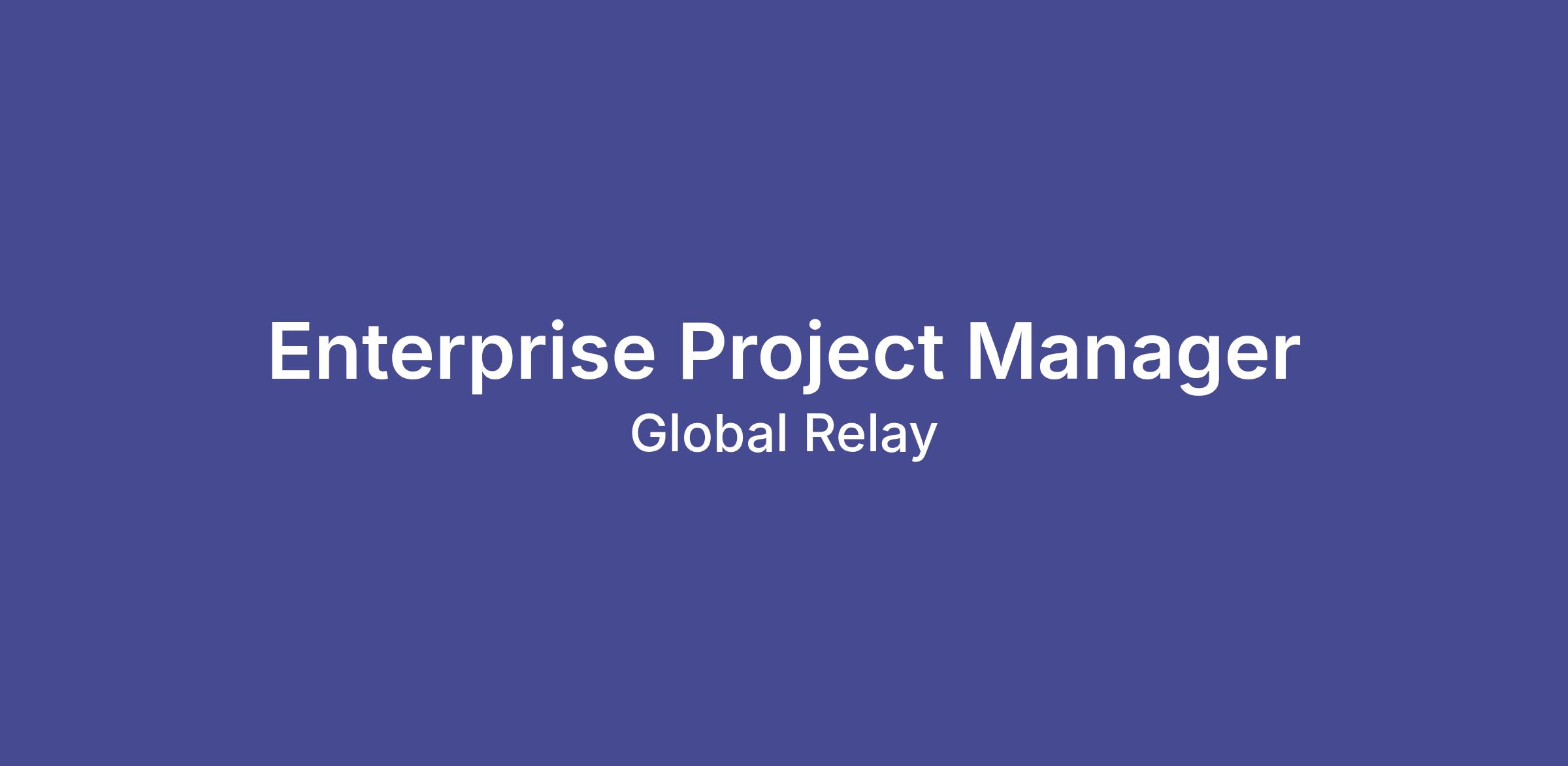 The Enterprise Project Manager is responsible for the successful onboarding of key customers onto Global Relay services. This role will serve as the main point of contact for the customer and will ensure that onboarding projects are moving forward and that project schedules, issues, and action items are properly tracked.