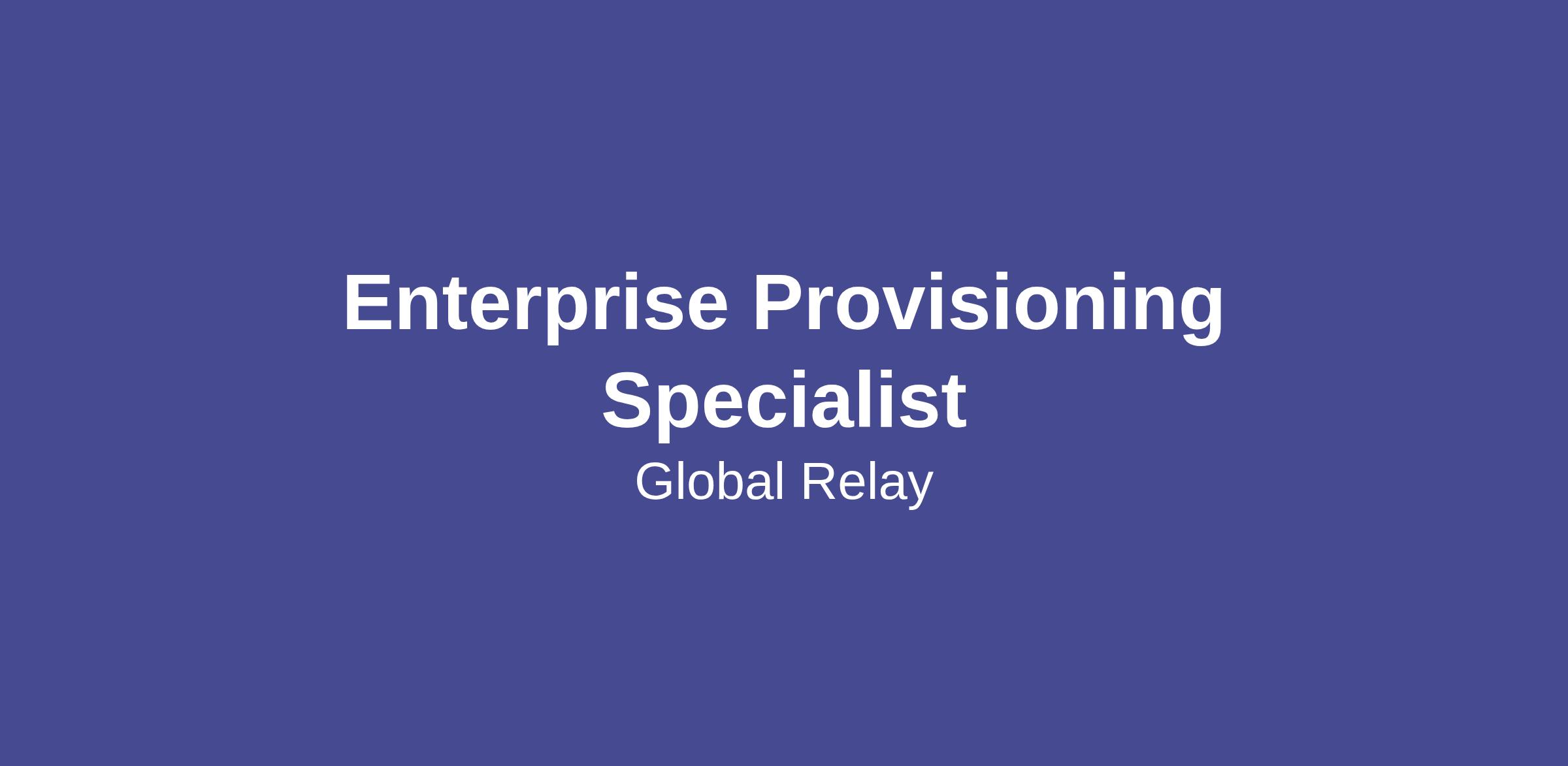 As part of the Enterprise Onboarding Team, the Enterprise Provisioning Specialists work with customers in executing the technical onboarding of Global Relay’s services. The Enterprise Provisioning Specialists work in collaboration with the Onboarding Team and customer IT resources to implement services in scope, provide guidance on best practices, and drive implementation progress. Provisioning Specialists are trusted client advisors helping ensure that the solutions meet each customer’s unique requirement while setting up services correctly and smoothly. This team is available 24x7 for working with customers globally.