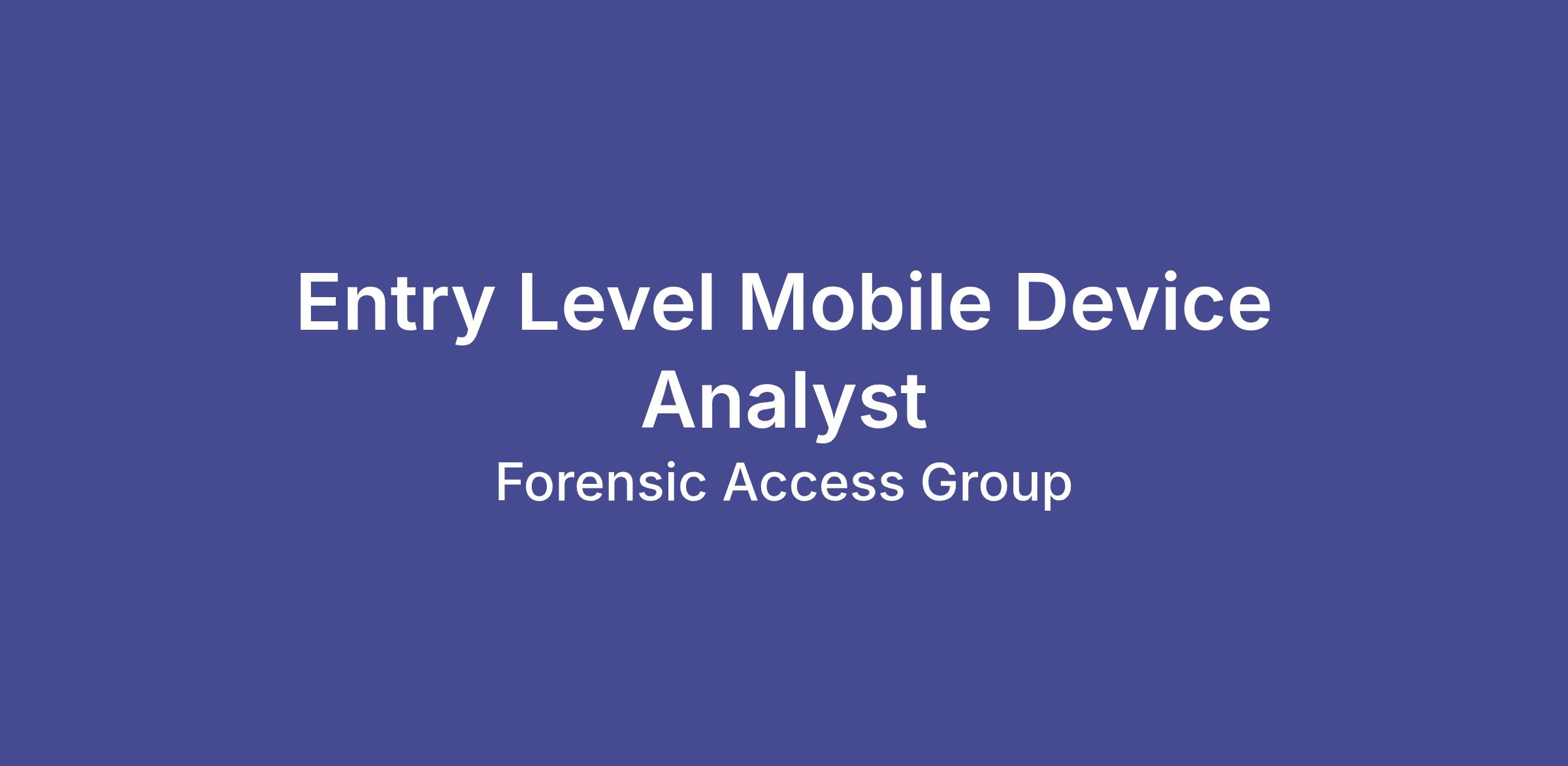 We are looking for Entry-Level Mobile Device Analyst to acquire, process and analyse evidential data and produce factual reports. Full training will be required.
