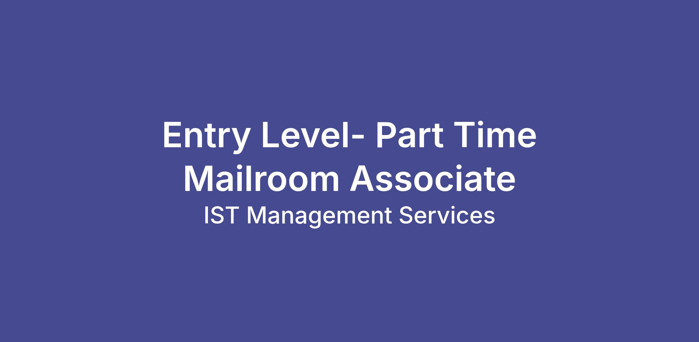 IST Management is seeking an Entry Level Part Time Mailroom Associate to join our Miami team! The Part Time Mailroom Associate will be responsible for assisting with mail and package services provided on-site in a team environment. Ideal candidates have prior customer service experience, are a team player, and are willing to train!