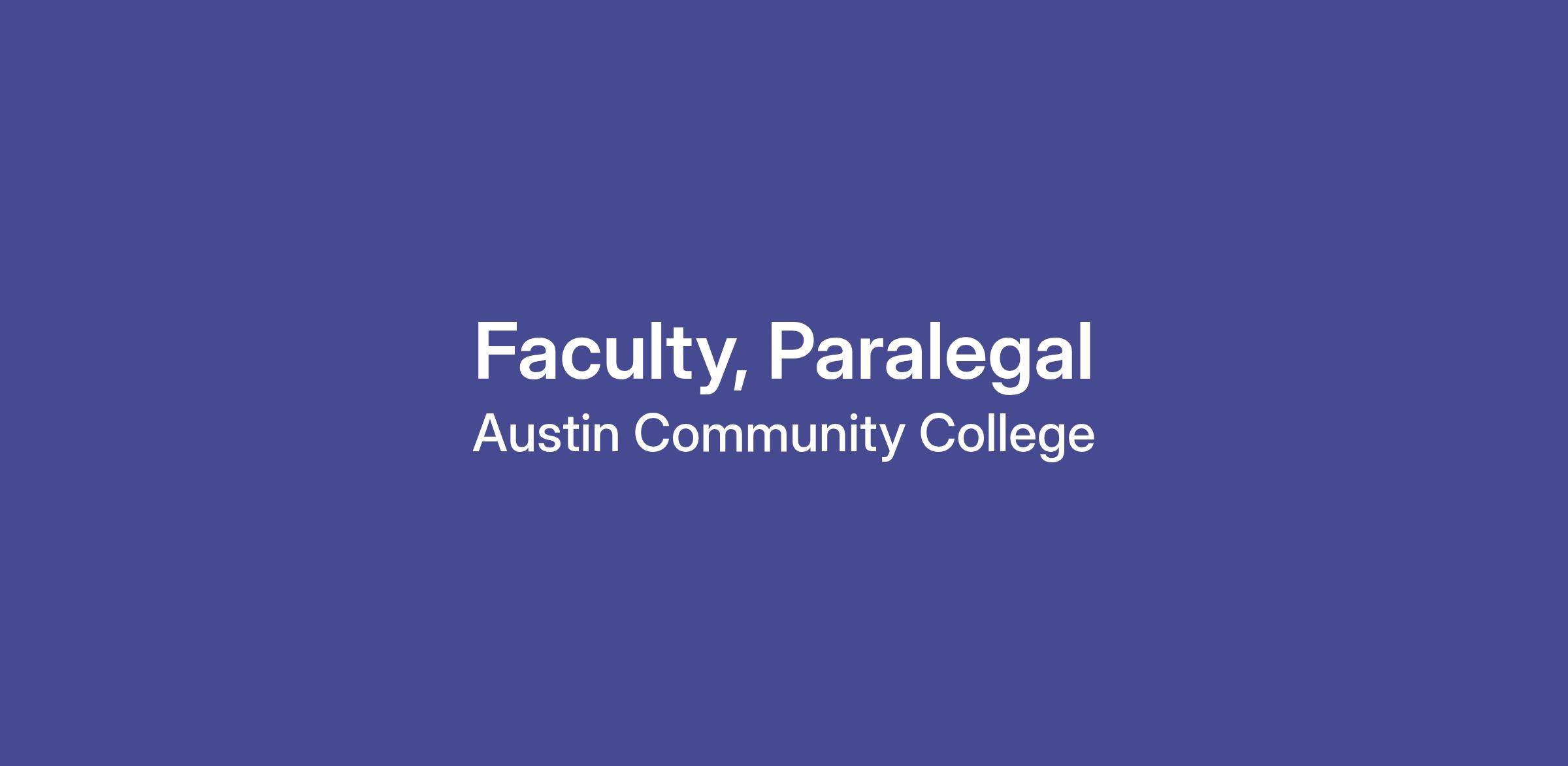 Austin Community College’s Legal Paralegal Program is a night/Saturday program designed to prepare the student to function as a paralegal (legal assistant) in a law firm or the law department of a government agency or corporation. Topics include family law, real property, wills and trusts, civil litigation, and legal writing.