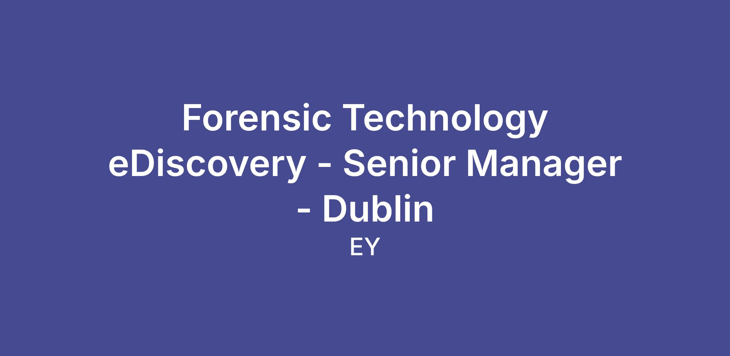 Financial Services - Senior Manager, Forensic Technology eDiscovery – Dublin