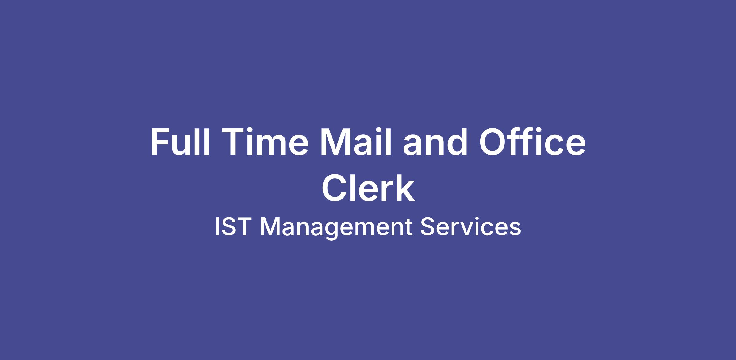 IST Management is seeking a Full Time Mail and Office Clerk for the Memphis, TN team! The Mail and Office Clerk will be responsible for providing corporate mail and other support services on-site in a team environment. Ideal candidates will be ready to grow their career in facilities and office services, and to take advantage of internal opportunities at IST Management for training and development toward advancement into management roles.