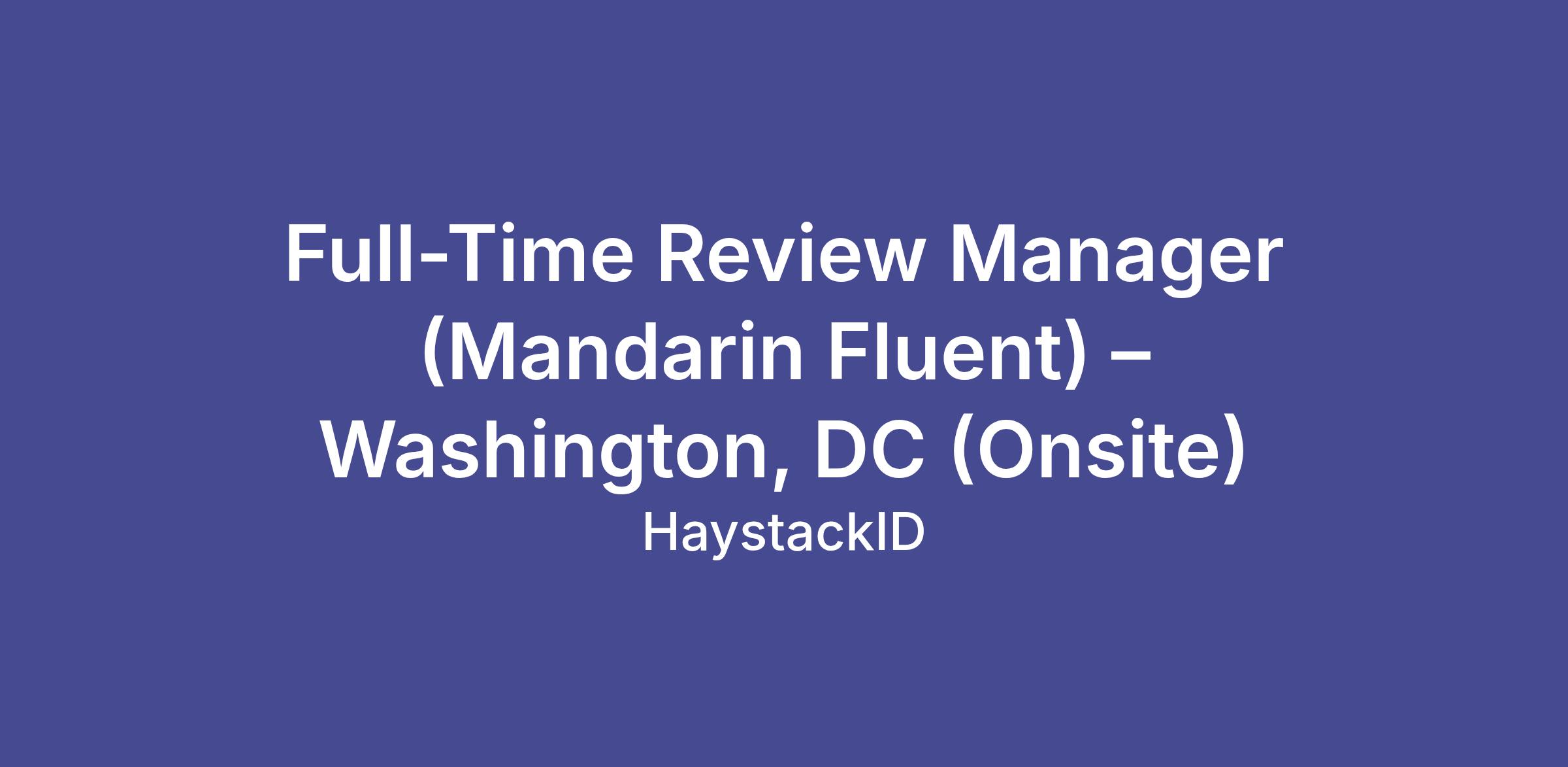 Full-Time Review Manager (Mandarin Fluent) – Washington, DC (Onsite)