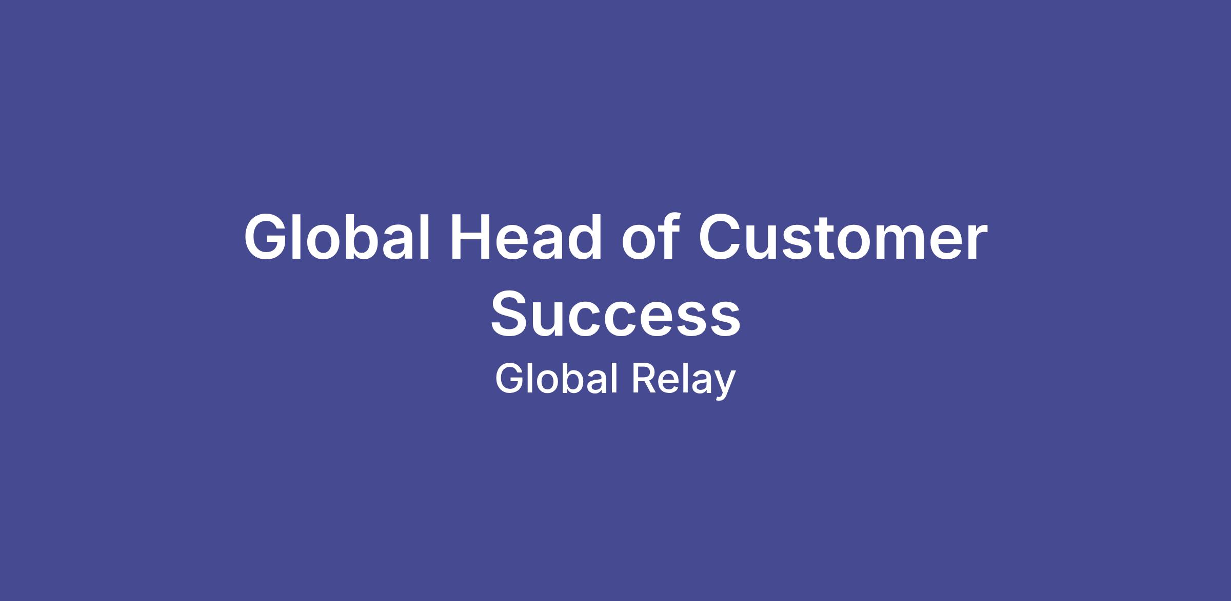 As Global Head of Customer Success, you will lead this mission-critical function as the voice of the customer at the executive level. Global Relay’s product portfolio and customer base have grown exponentially, which requires our service model to evolve. This role will drive strategic direction for 20,000+ customers (multi-9 figure portfolio), with emphasis on driving enterprise success through retention, growth, and satisfaction. Reporting to the Global Head of Sales, you will lead a global team to optimize the customer journey and build long-term customer value. This is a unique opportunity to build and scale a world-class team and shape the future of Customer Success in the financial services sector and beyond.