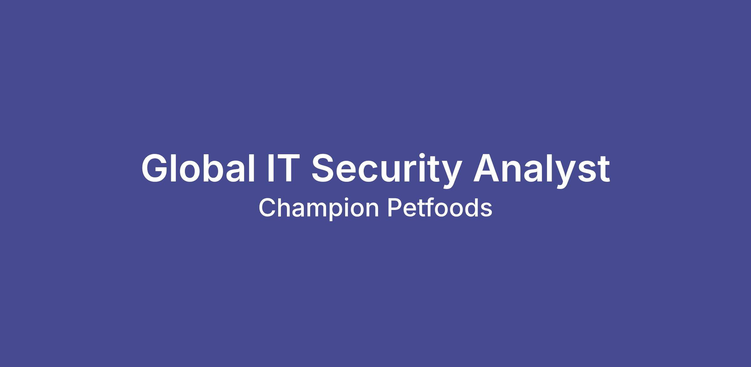 Champion Petfoods is expanding! We are excited to announce we are looking for a Global IT Security Analyst to join our rapidly growing company.