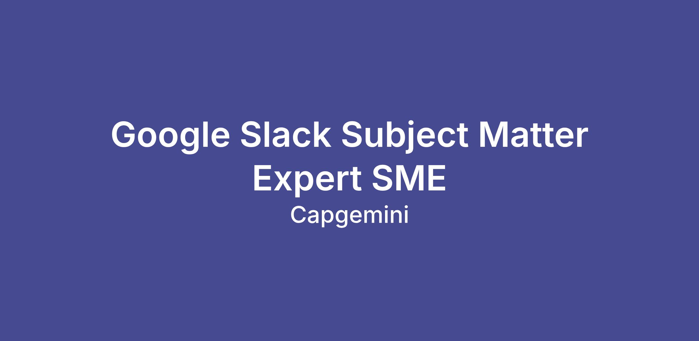 Job Title: Google Slack Subject Matter Expert SME