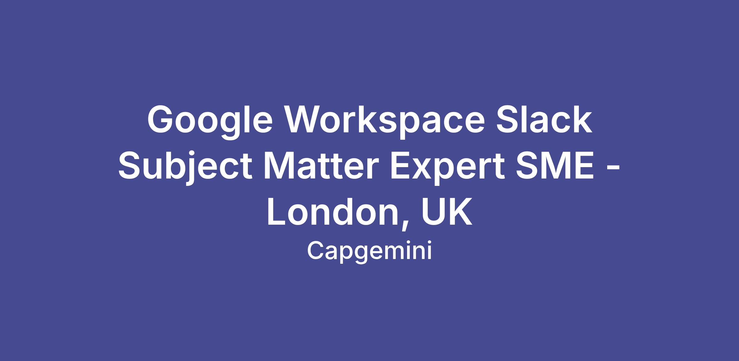 We are seeking experienced Google Workspace Slack SME with strong expertise in banking domain who will overseeing the planning, execution, and successful delivery of projects