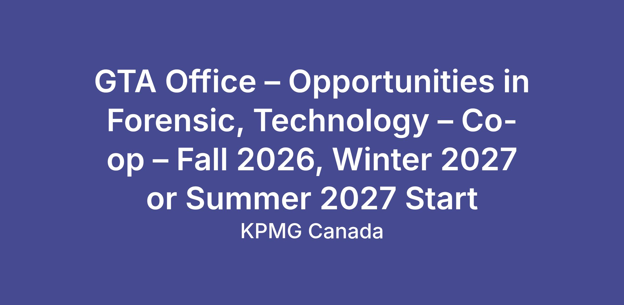 Please apply directly to KPMG at Students - KPMG Canada (home.kpmg).