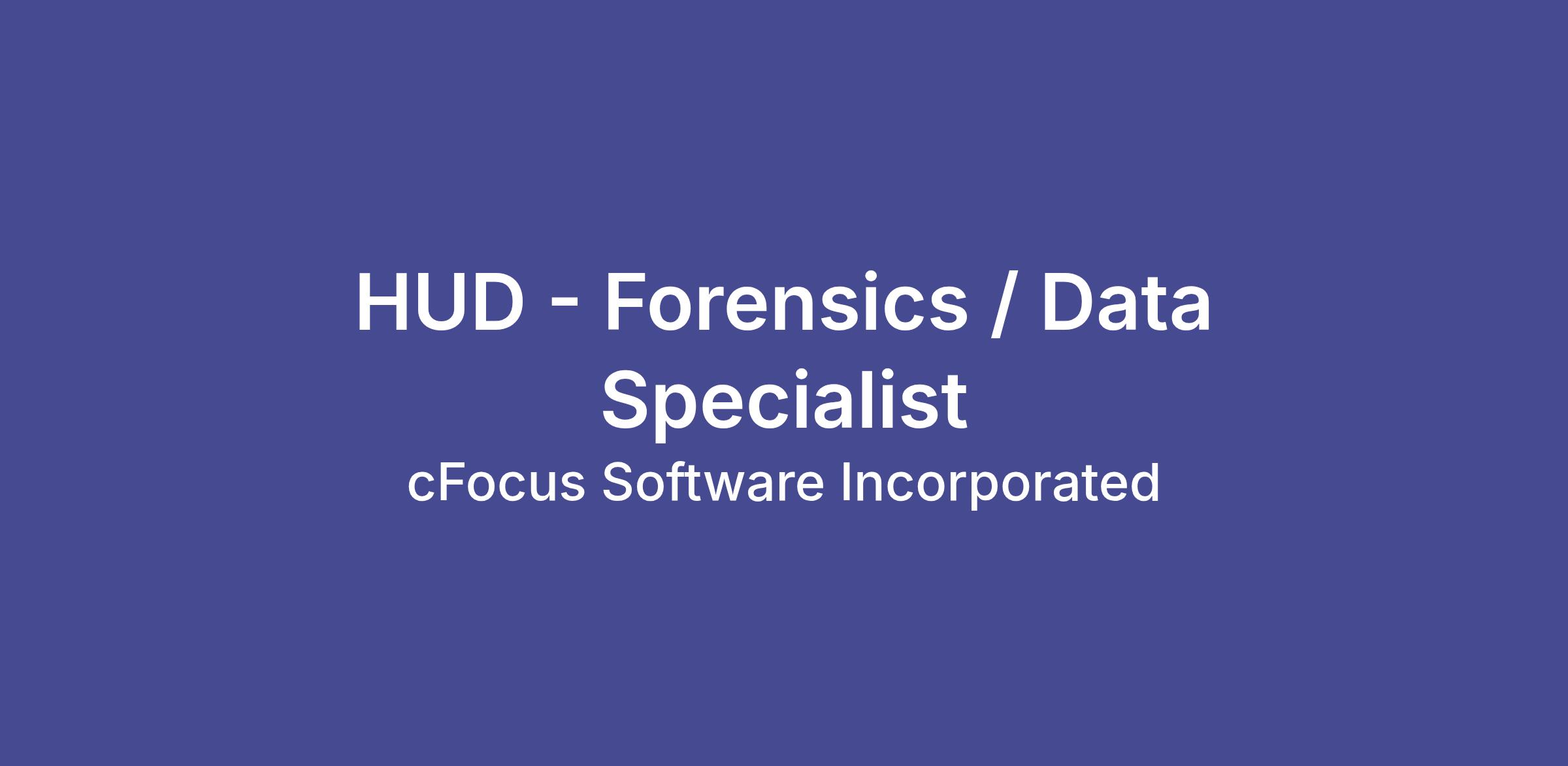 cFocus Software seeks a Forensics / Data Specialist to join our program supporting Housing and Urban Development (HUD). This position is remote. This position requires a Public Trust clearance.Qualifications:- Bachelorβs degree in Cybersecurity, Digital Forensics, Computer Science, or related field.