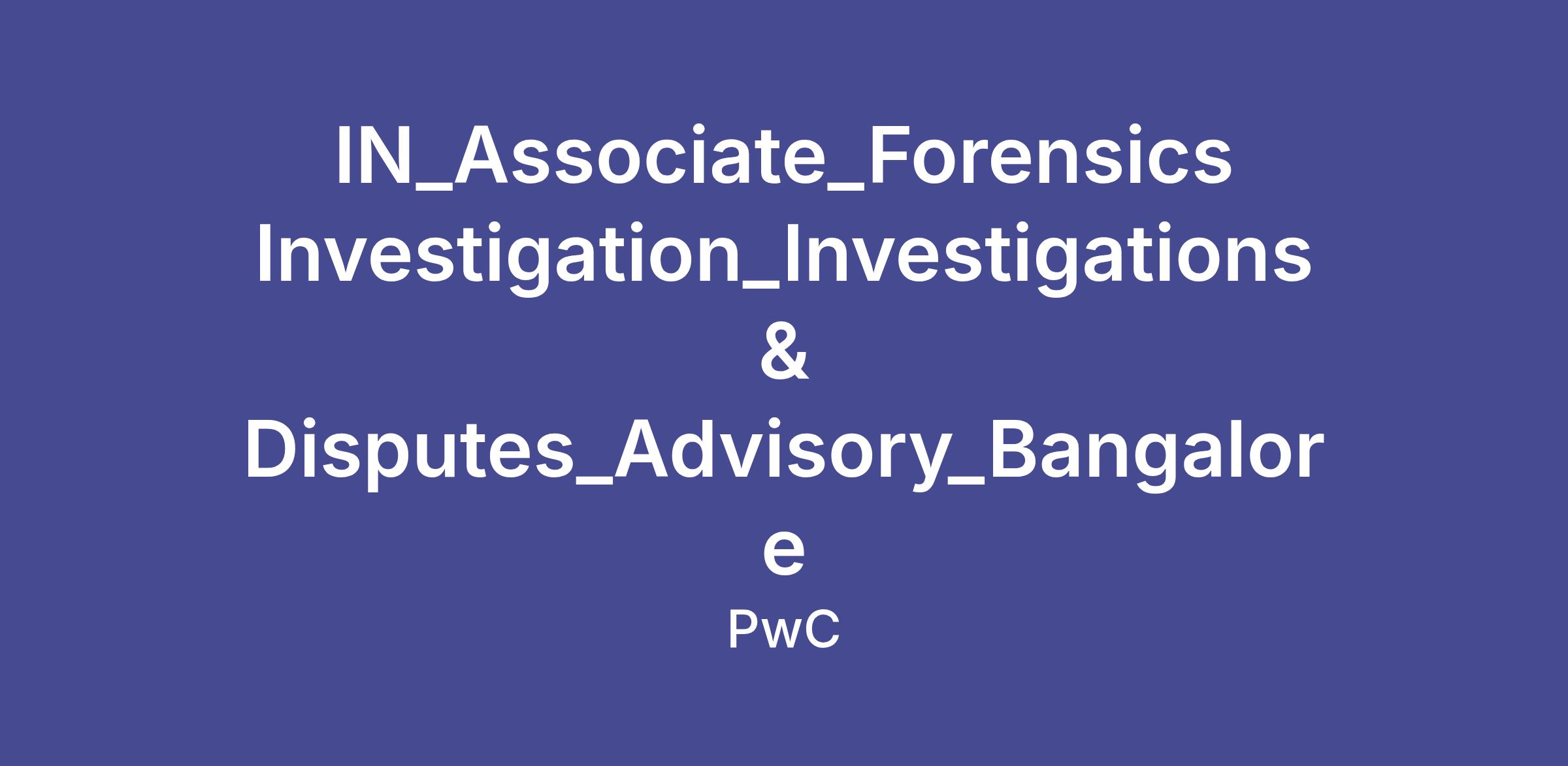 IN_Associate_Forensics Investigation_Investigations & Disputes_Advisory_Bangalore