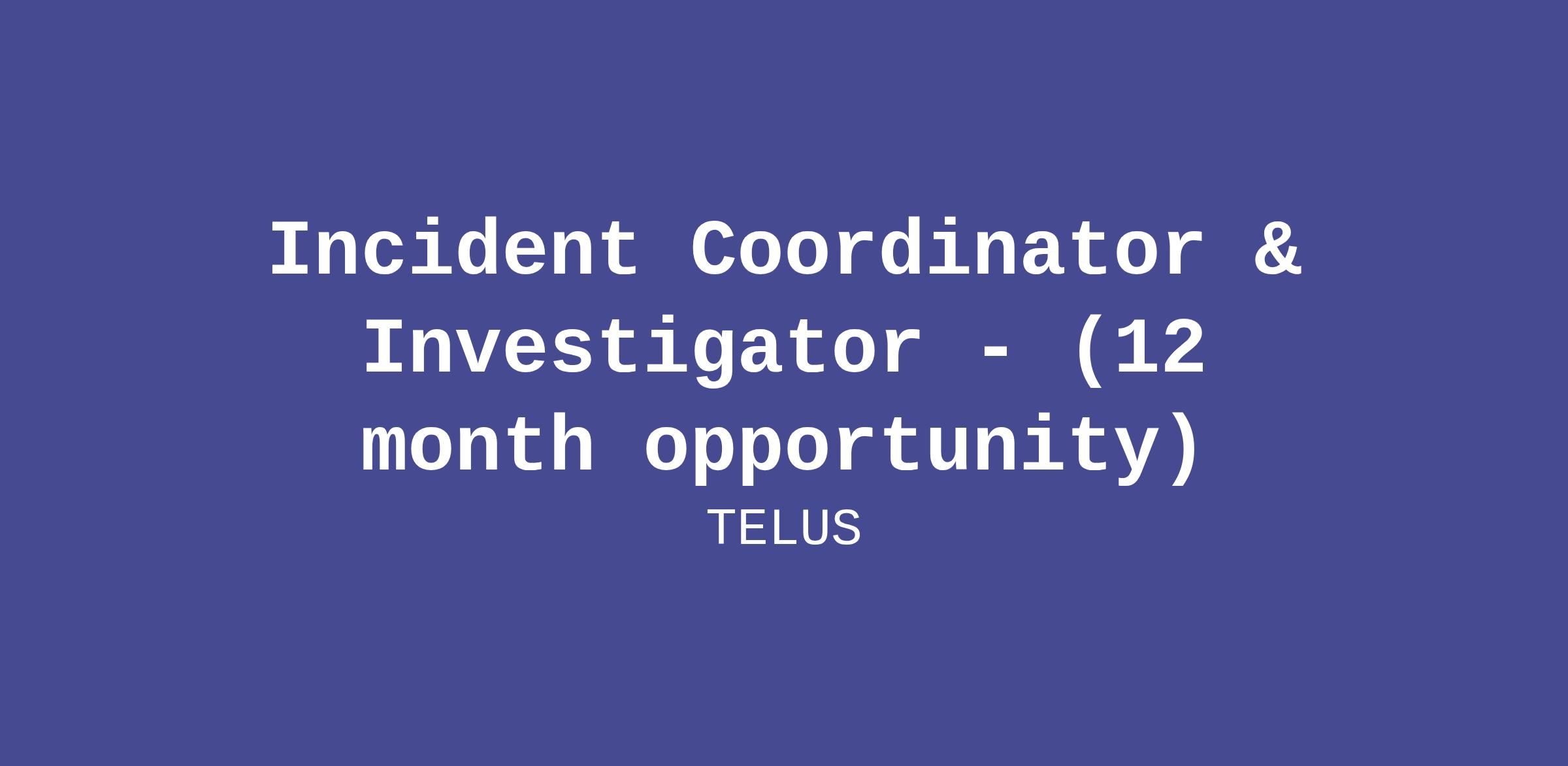 The TELUS Data and Trust Office (DTO) is seeking an Incident Coordinator and Investigator to join our team. This role will involve day-to-day coordination and management of critical privacy, data and AI incidents across all of TELUS globally, and will assist the DTO team lead in conducting investigations.