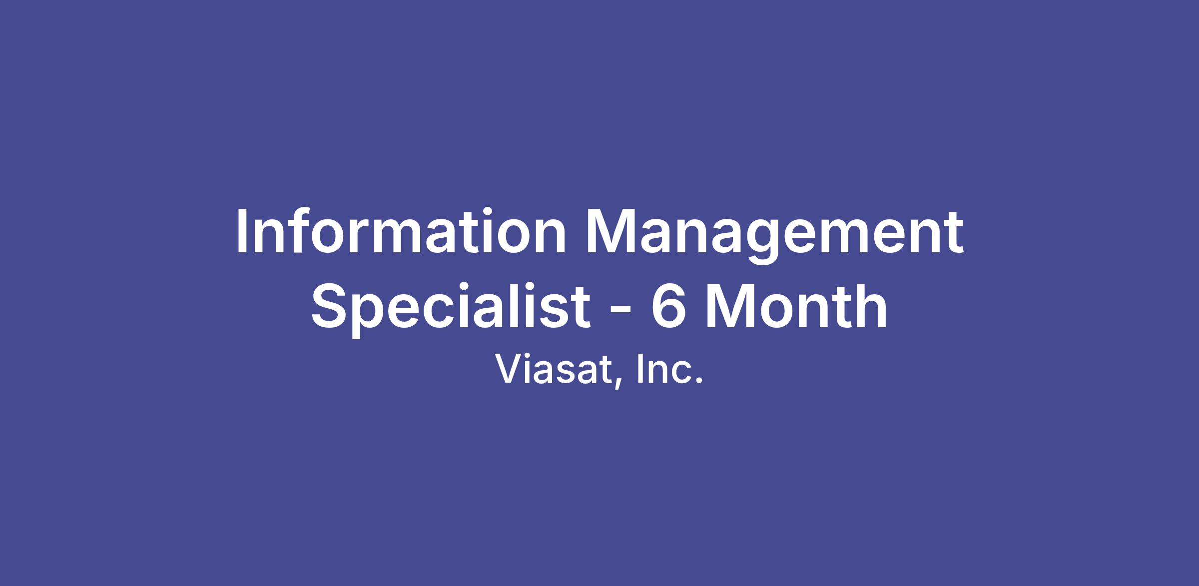 What you'll doThe Information Management Specialist is responsible for designing, configuring, and maintaining secure document libraries and structures within Viasat digital systems.