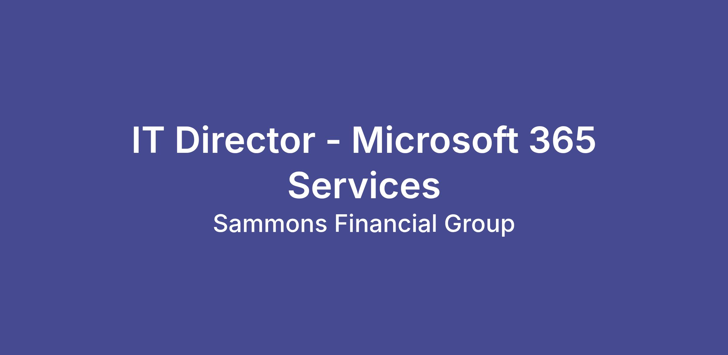 What You Can Expect In This RoleThe IT Director – Microsoft 365 Services is responsible for the strategic leadership, governance, architecture, security, and operational excellence of the organization’s Microsoft 365 ecosystem. This role oversees the design, implementation, optimization, and compliance management of M365 platforms including Exchange Online, SharePoint Online, OneDrive, Teams, Power Platform, Purview, and related security and compliance services.