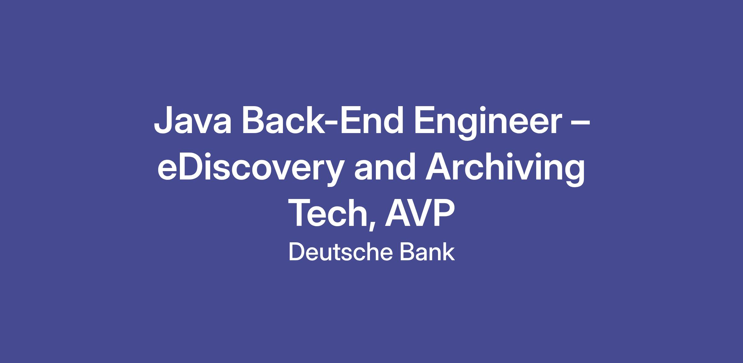 Job Title: Java Back-End Engineer – eDiscovery and Archiving Tech, AVP