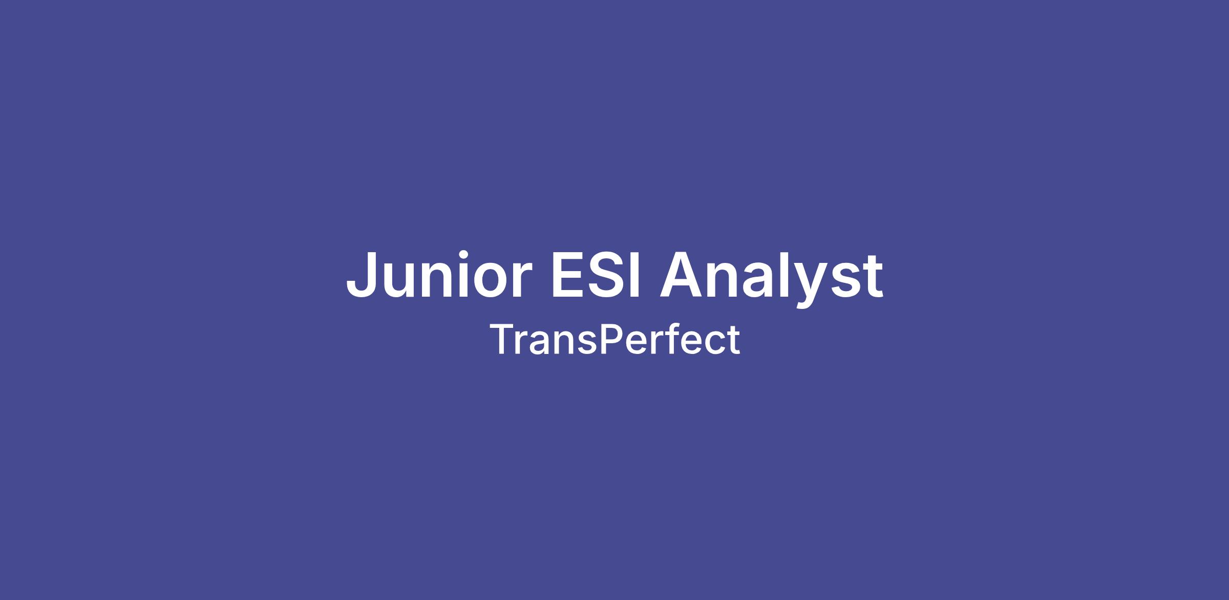 TransPerfect Legal Solutions is currently looking for analytical/logical mindsets to join our team as a Junior ESI Analyst. This is the perfect way to begin your career in eDiscovery.