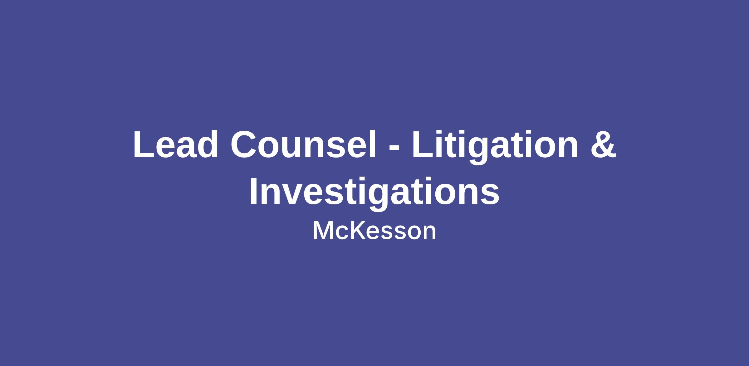 Title: Lead Counsel - Litigation & Investigations