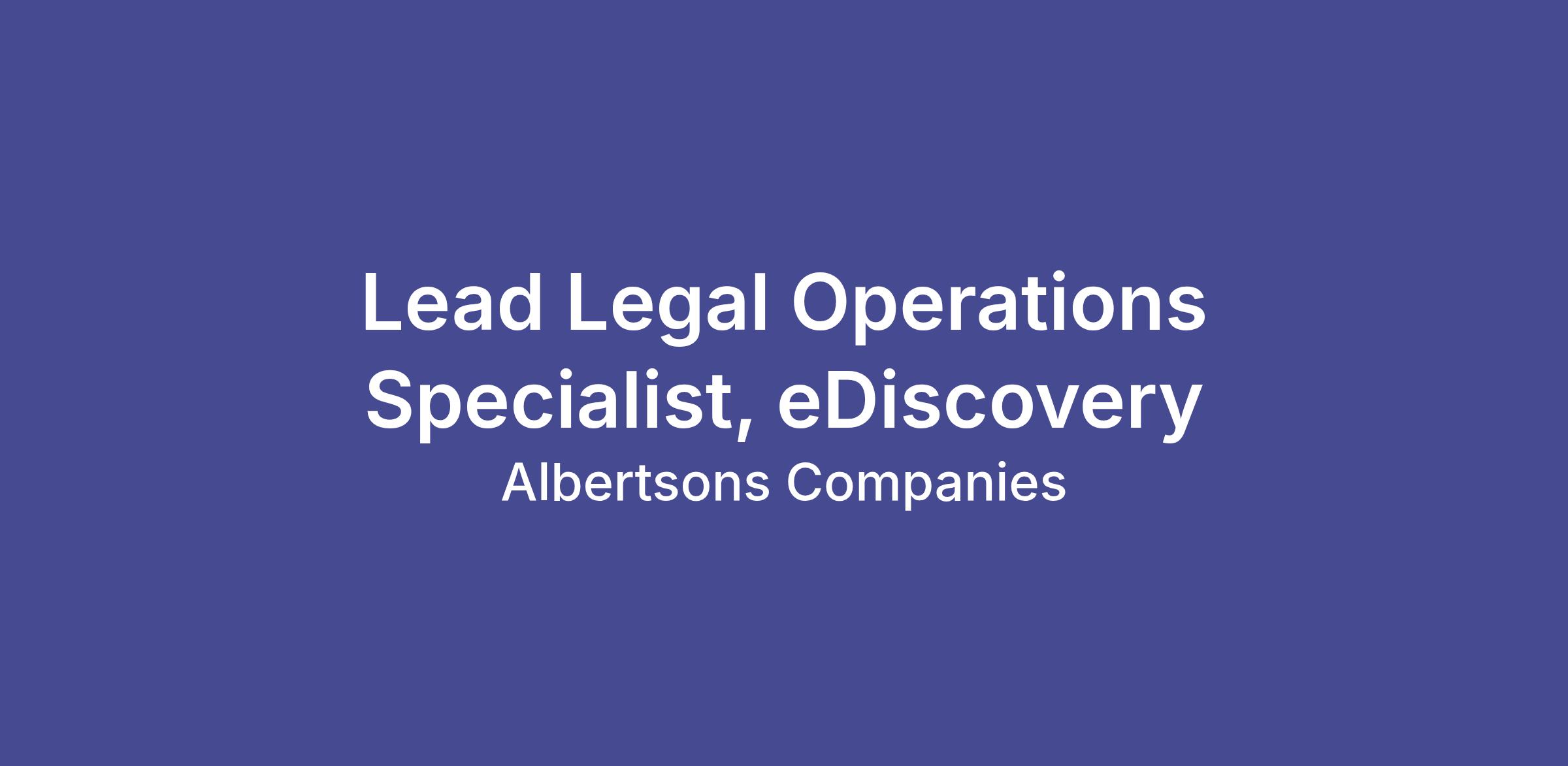 Lead Legal Operations Specialist, eDiscovery