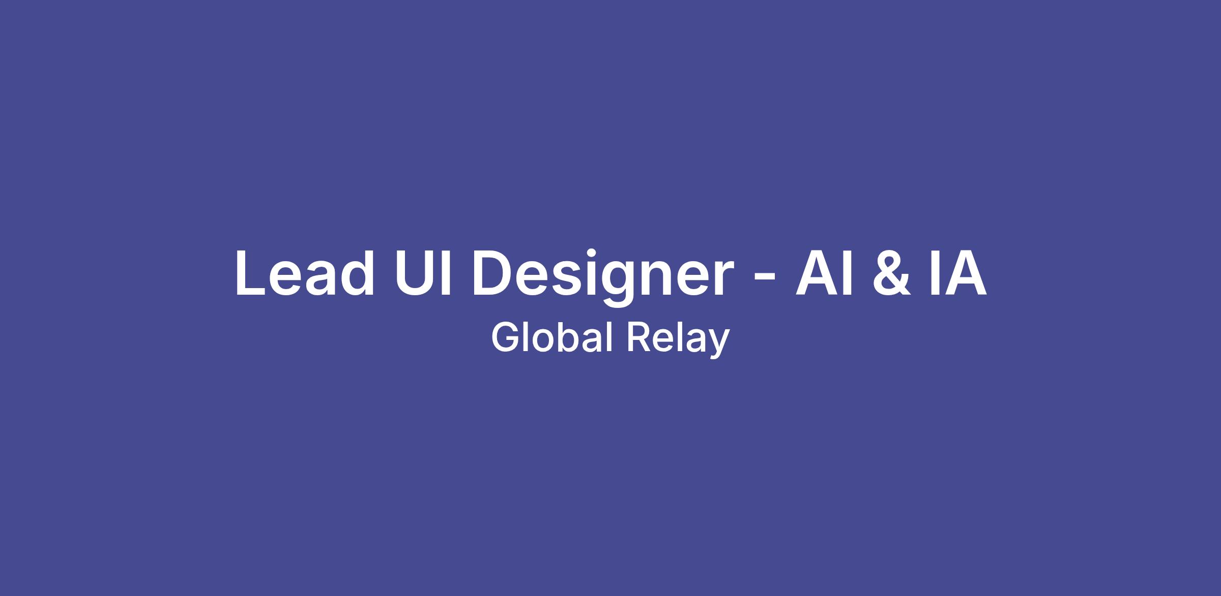 As Lead UI Designer, you will own the visual and interaction design of key product areas across two of Global Relay's core offerings: our information archiving and artificial intelligence platforms.