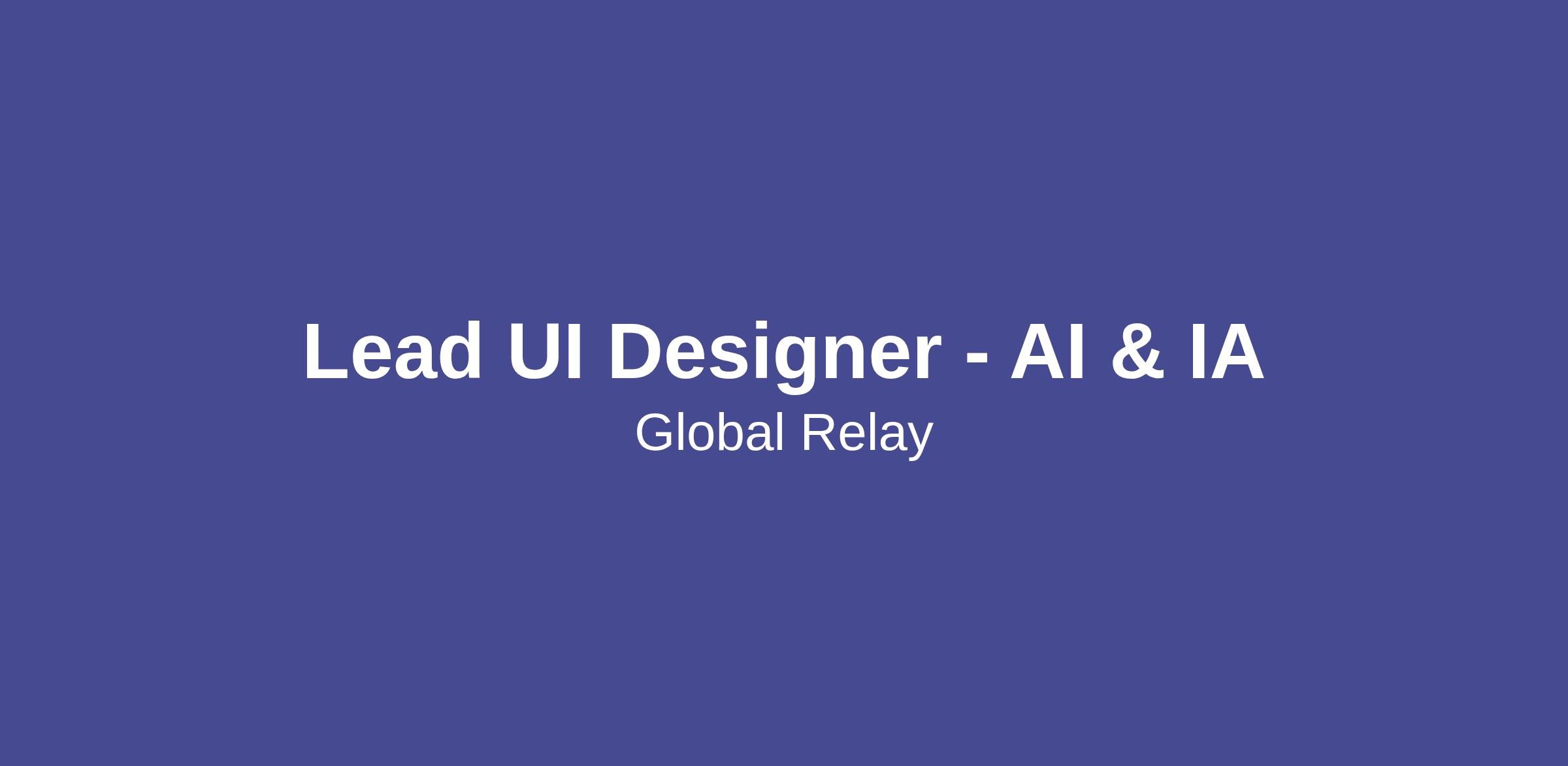 As Lead UI Designer, you will own the visual and interaction design of key product areas across two of Global Relay's core offerings: our information archiving and artificial intelligence platforms.