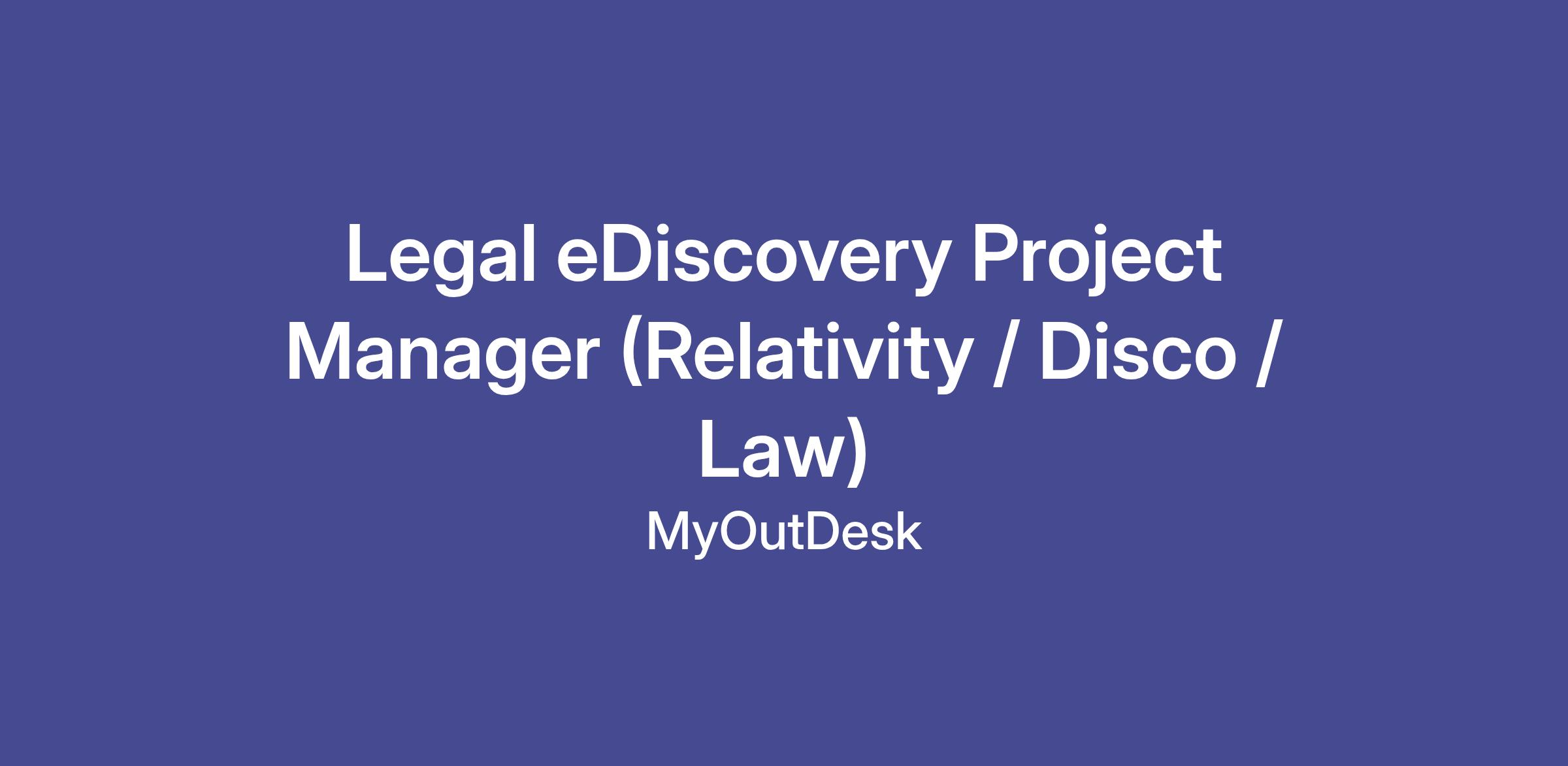 MyOutDesk is searching for a skilled Legal eDiscovery Project Manager with expertise in Relativity, Disco, and LAW. This role is integral to our team and involves managing complex eDiscovery projects to ensure compliance and timely delivery of legal services. As a Legal eDiscovery Project Manager, you will take on critical responsibilities, including coordinating project resources, overseeing workflows, and serving as the primary contact for clients throughout the project life cycle. Your understanding of eDiscovery processes and technologies will be valuable as you collaborate with legal professionals to achieve successful project outcomes.