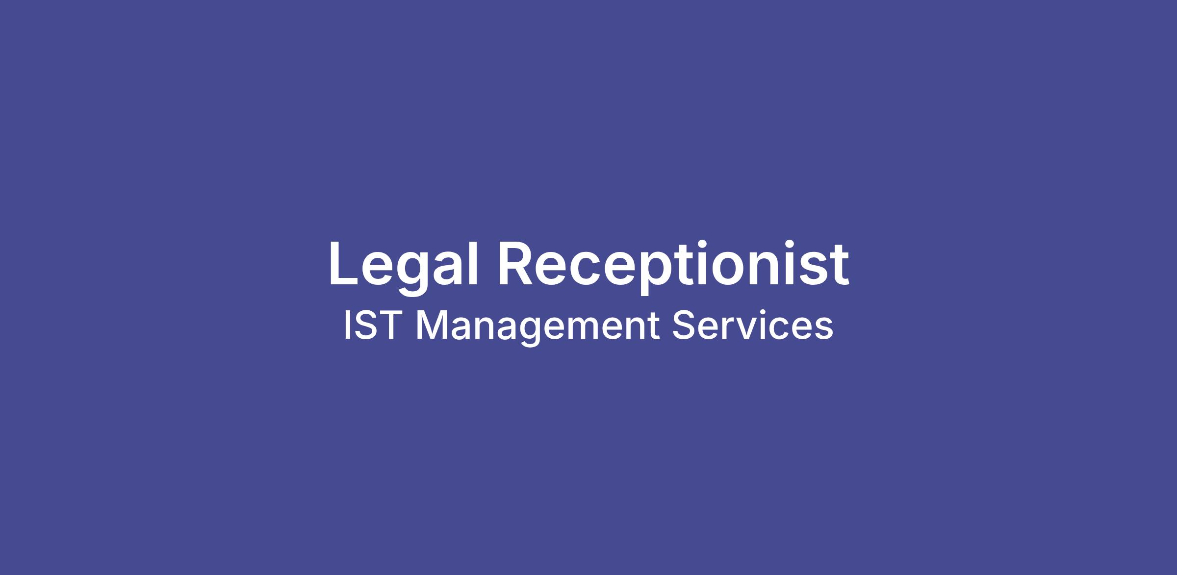 IST Management is seeking a Legal Receptionist to join the Naples team today! The Legal Receptionist will be responsible for providing daily Corporate reception/front desk, hospitality, and other administrative support services on-site in a professional environment. Ideal candidates will have prior experience in reception services, possess an excellent customer service mindset, display clear communication abilities, are willing to train, and are ready to grow in their professional office services career! Prior experience in a legal setting is a plus.