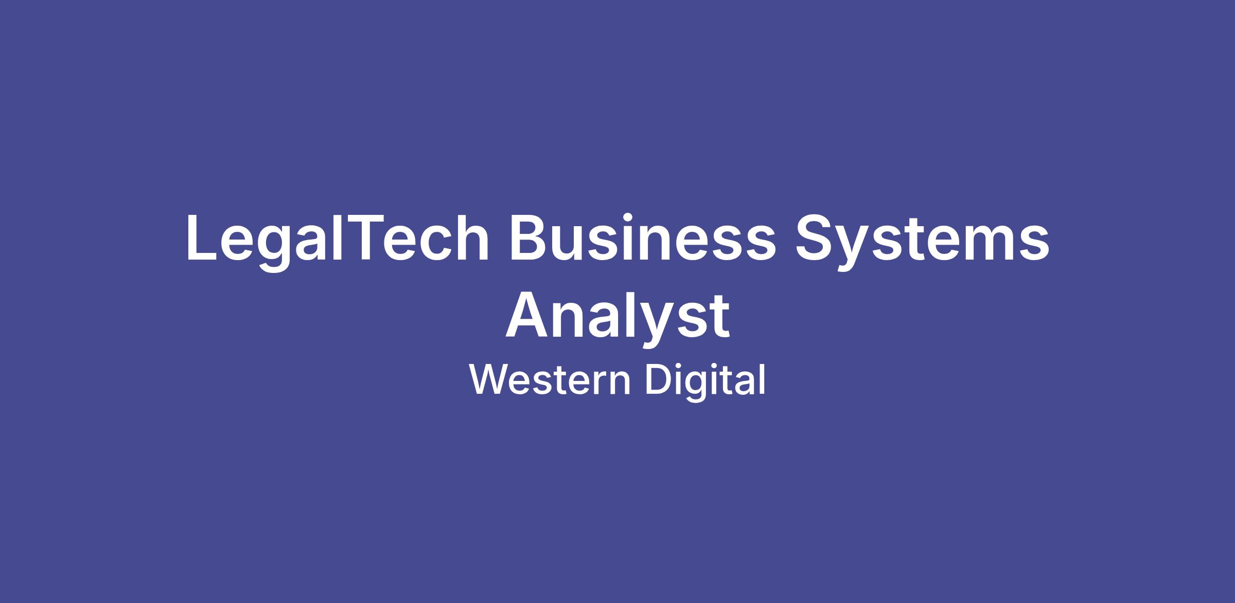 This role is an Individual Contributor in the IT organization supporting Legal at Western Digital.