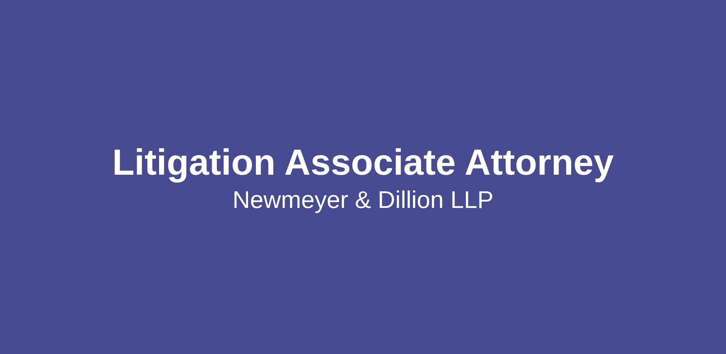 About Us: For over 40 years, Newmeyer Dillion has been providing clients with industry-leading, results-driven legal representation. We prioritize professional excellence, creativity, and the delivery of practical legal solutions that inspire confidence in our clients and colleagues alike. We are seeking dynamic and motivated attorneys who share our commitment to serving client needs and contributing to our firm's culture of excellence.
