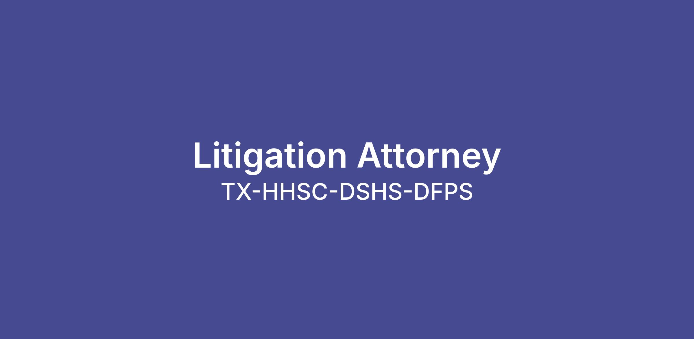 This position is an Attorney in the Litigation Department on the Medicaid Litigation Team. The Litigation Department is one of seven departments in the Legal Services Division of the HHS Office of Chief Counsel (OCC). The Litigation Department provides legal advice and support for pending or threatened litigation against HHS or HHS employees in their official or individual capacities. The Department serves as the primary point of contact with the Office of the Attorney General to defend lawsuits and administrative actions filed against HHSC or DSHS concerning employment decisions, tort claims, agency rules and policies, alleged constitutional deprivations, contract and procurement disputes, federal and state statutes, including the Medicaid Act, and to prosecute cases of Medicaid fraud.