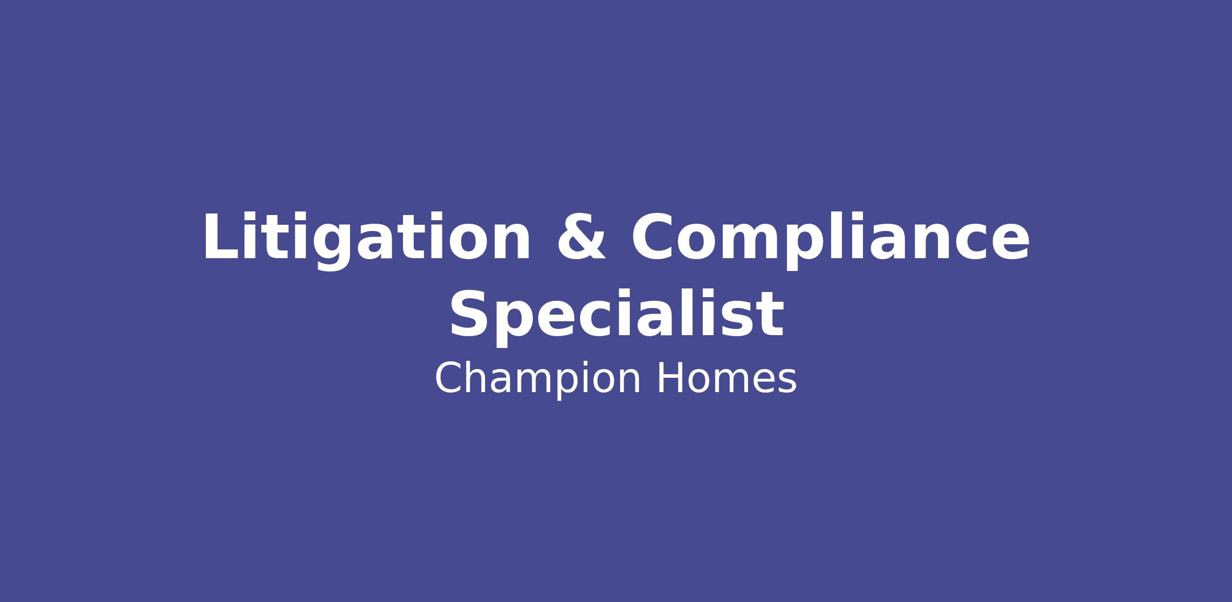 Champion Home Builder, Inc wants YOU! We are seeking to hire a Litigation & Compliance Specialist to join our team in the Troy, MI region.