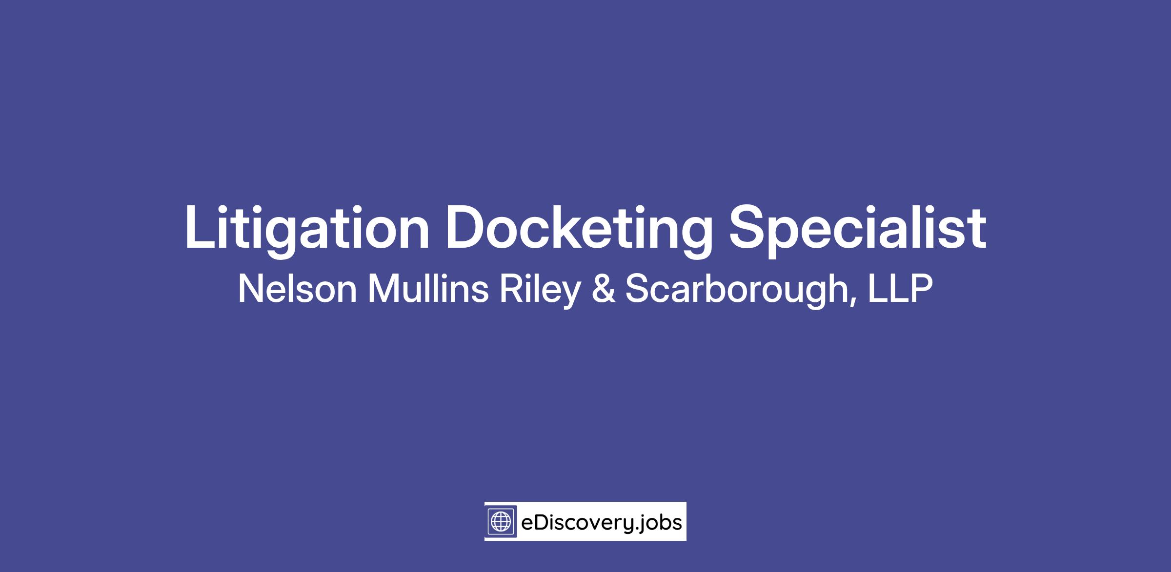 Nelson Mullins, an AmLaw 60 firm, is seeking a Litigation Docketing Specialist to join our team under the supervision of the Litigation Docketing Manager. In this role, you will work closely with attorneys and legal staff to deliver accurate and reliable litigation calendaring services for federal, state, and agency matters. You will follow established procedures, best practices, and workflows, while contributing to the departmentβs mission of providing best-in-class service to clients and mitigating risk to the firm.