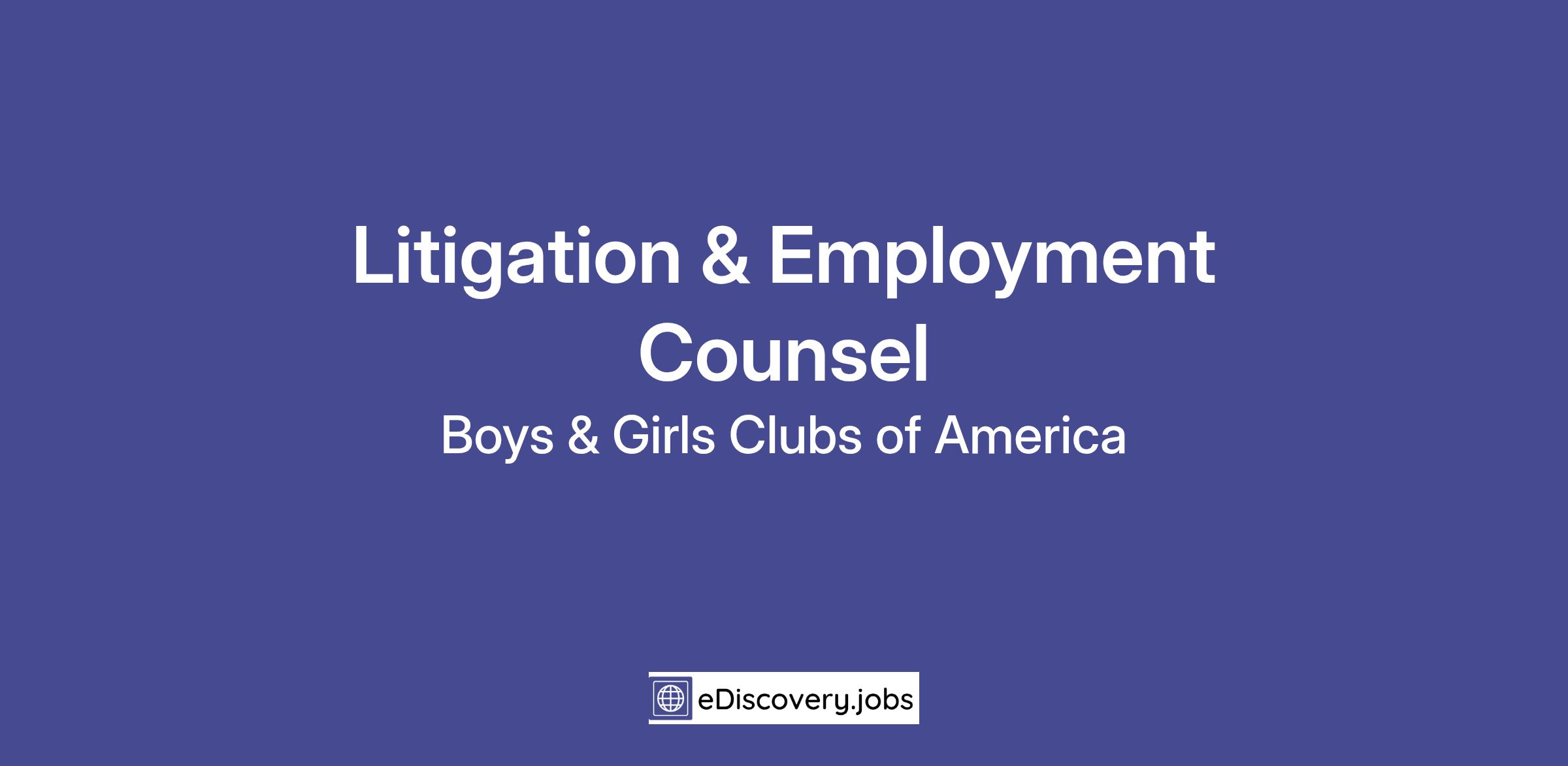 Under the direction of the Assistant General Counsel, Litigation & Employment Counsel will assist in litigation management on behalf of and provide legal counsel to Boys & Girls Clubs of America on a variety of litigation, employment law, regulatory, and other legal issues.