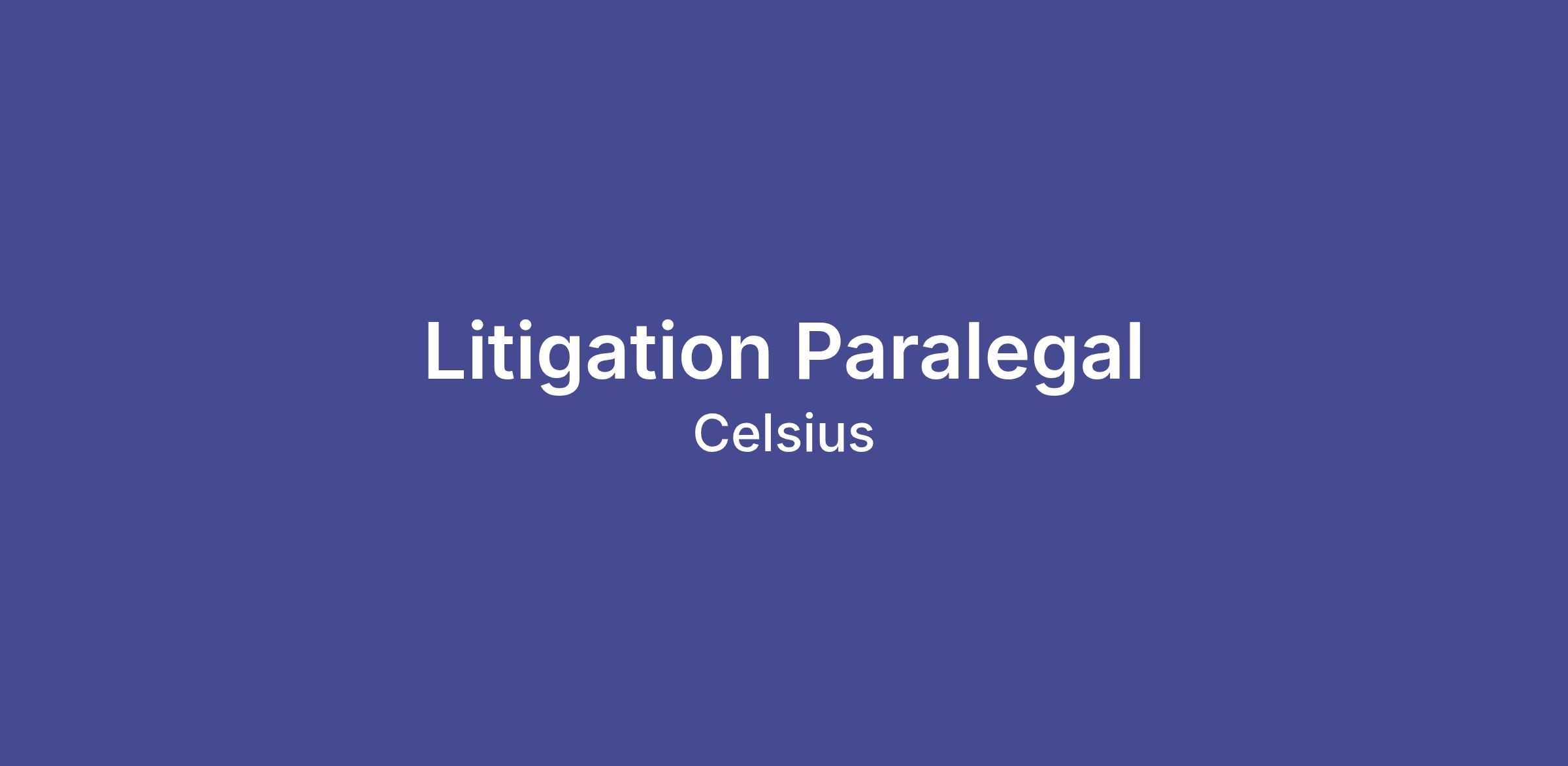 litigation ParalegalIn-Office: Based full-time at CELSIUS® Headquarters in Boca Raton, FL