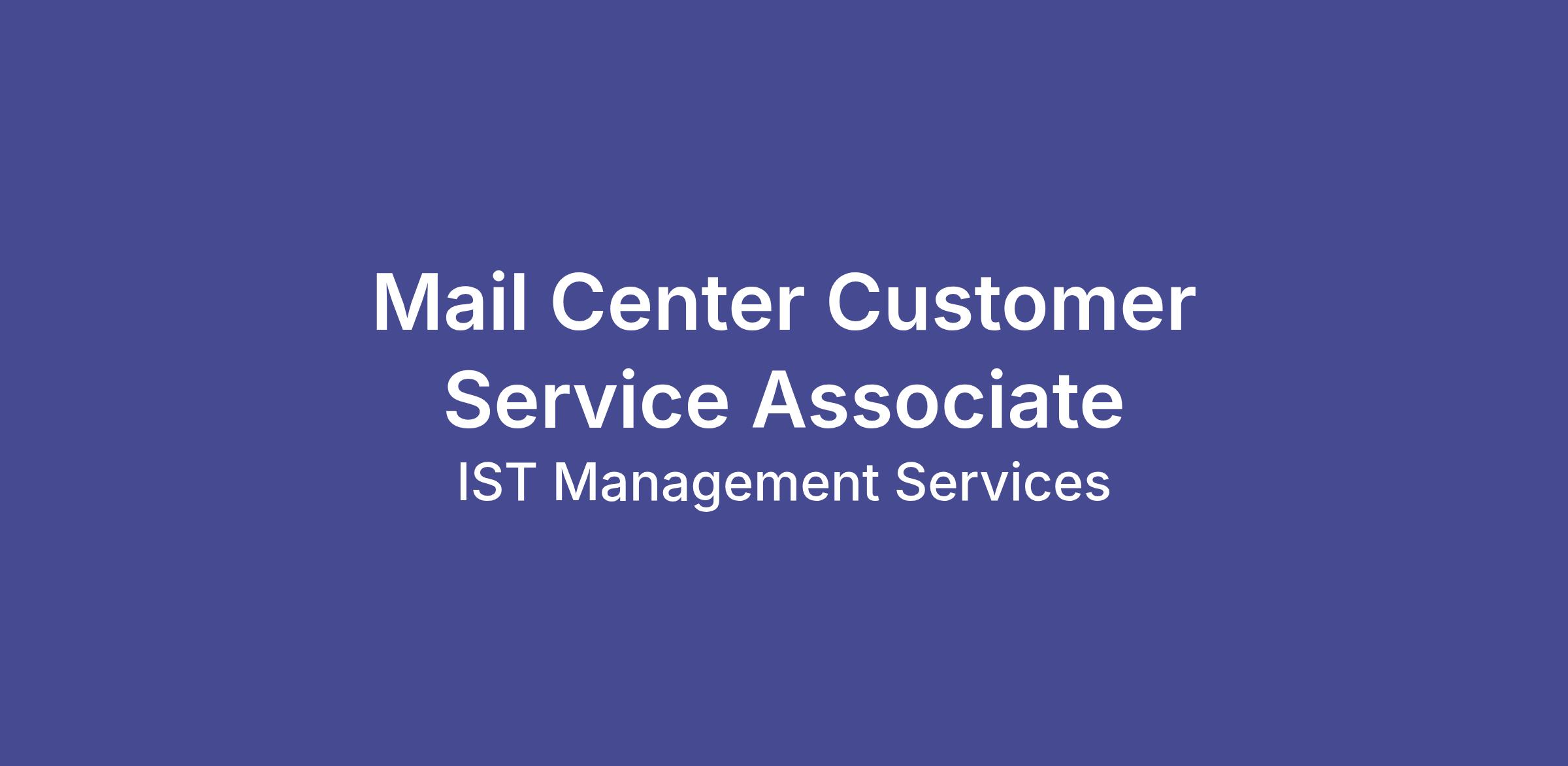 IST Management Services is seeking an energetic & dynamic individual with a passion to serve others to join our amazing team as a Mail Center Customer Service Associate. This position is located in Downtown Houston, TX and will consist of various mail related & print operations tasks, including shipping & receiving, delivery and processing of inbound/outbound mail & packages, document printing, copier fleet maintenance services, heavy lifting, etc, all performed within a corporate working environment. The ideal candidate must be detailed oriented & process driven with a background and focus in customer service and willing to train and be ready to grow in their professional career!
