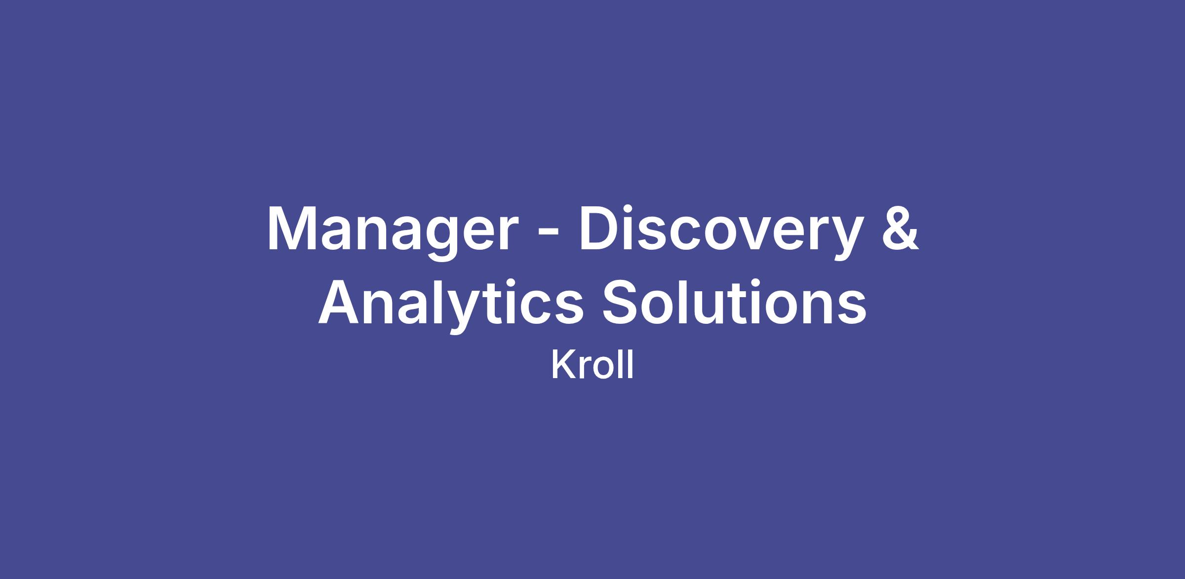 Kroll is seeking a Manager in its Discovery & Analytics Solutions practice to support and execute global eDiscovery engagements as part of its growing India-based delivery team. This role is responsible for managing day-to-day project delivery, supervising team members, and ensuring that work is performed efficiently, defensibly, and in accordance with Kroll standards.