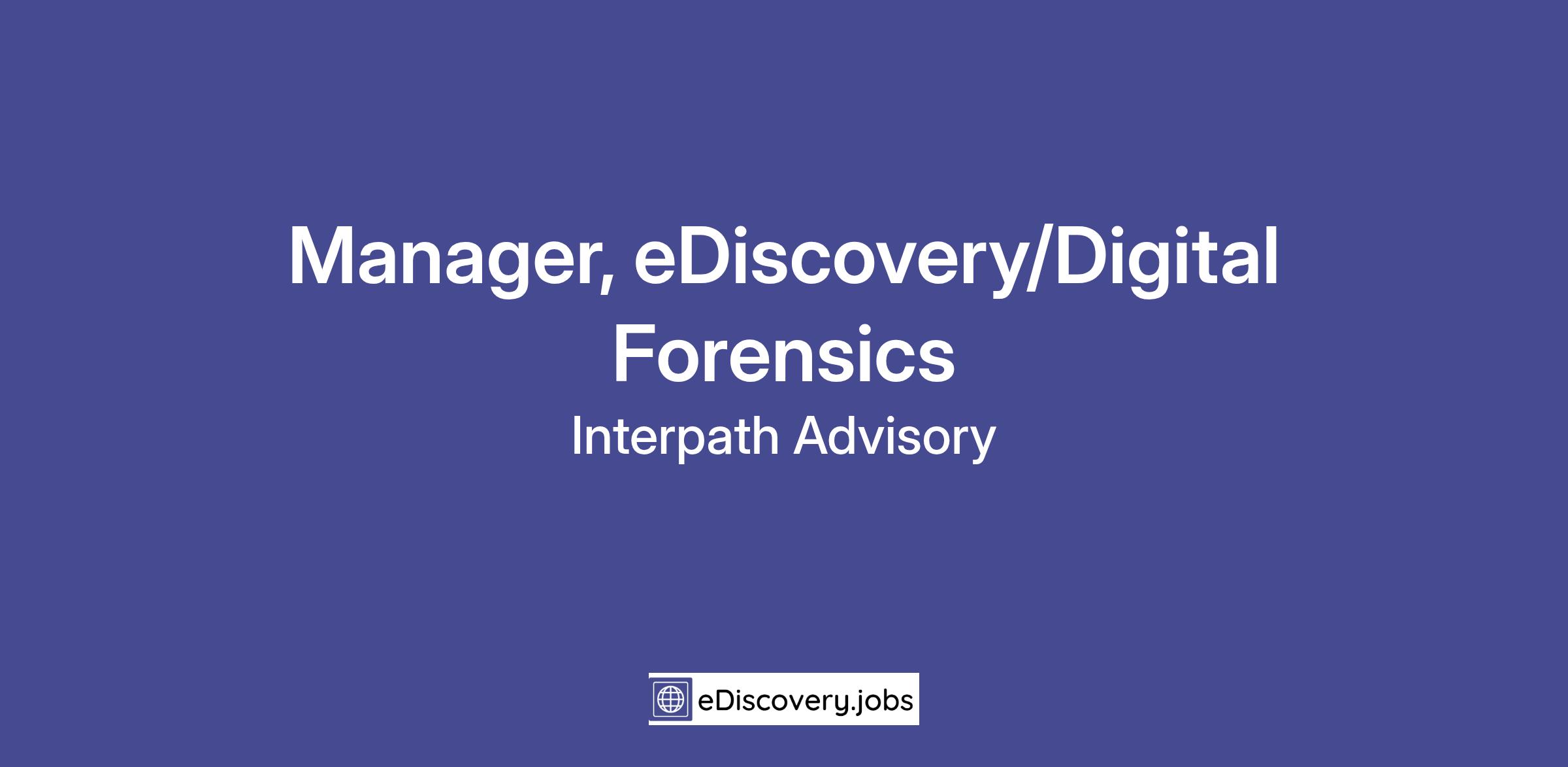 Interpath Advisory is looking for an experienced candidate to join the growing eDiscovery team in their Data and Tech group.