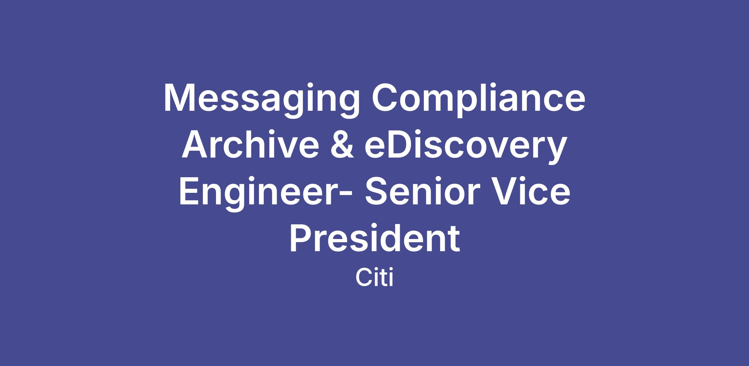 The Archive Engineering Team designs, builds, and helps maintains Citi’s global electronic communications archival platforms, ensuring all email, chat, and messaging data is retained, searchable, discoverable, and compliant with global regulatory requirements. This includes ownership of architecture, ingestion pipelines, retention controls, and integration with Legal, ICRM, CSIS, and regional partners.