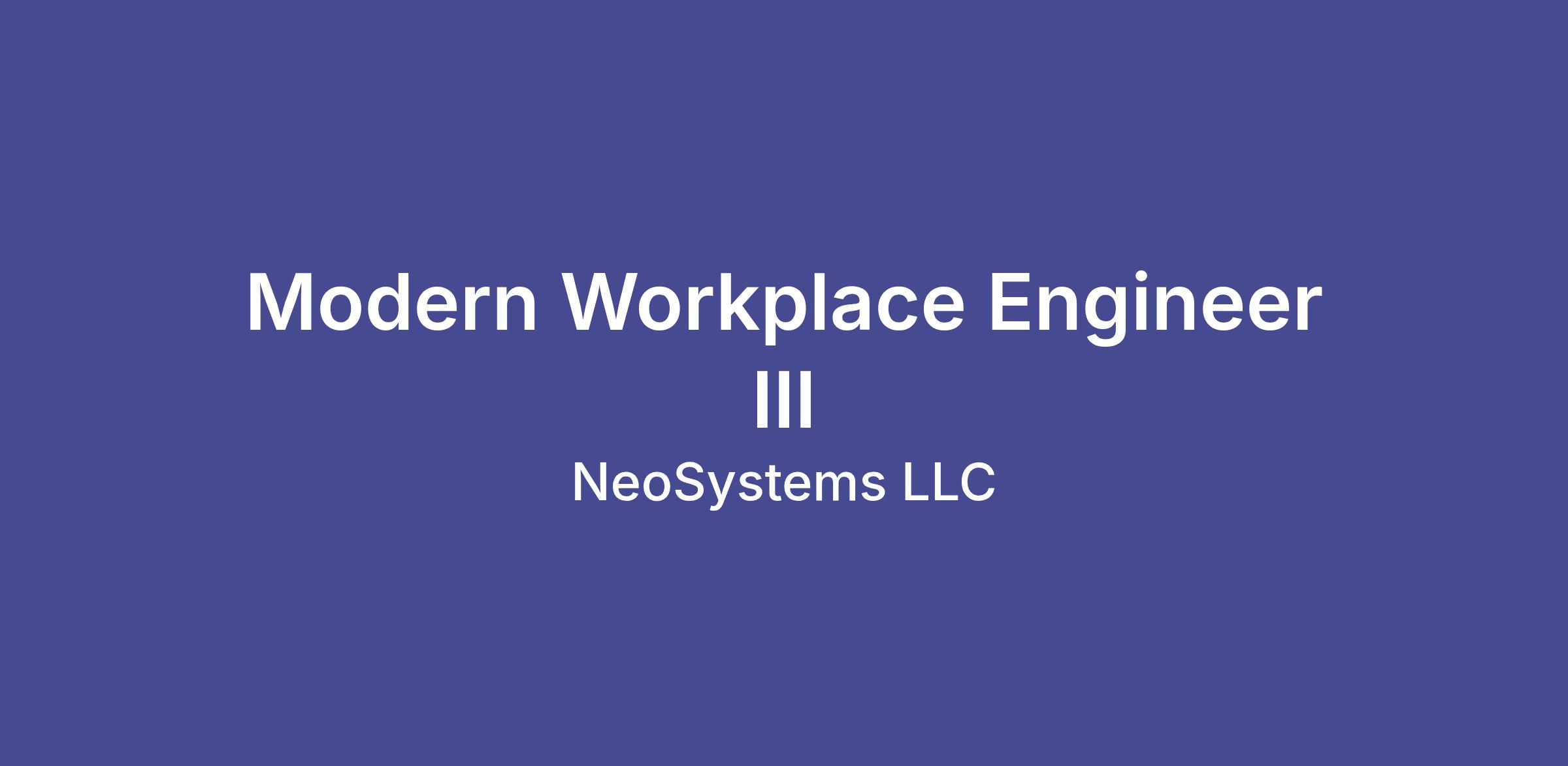 The Modern Workplace Engineer Level III supports Microsoft 365 environments for managed services customers. This role will lead the design, optimization, and security of Microsoft 365 E5 environments for clients primarily in the Defense Industrial Base. This senior technical role will architect complex collaboration and security solutions, mentor junior staff, and directly support customer compliance and productivity goals in tightly regulated environments.
