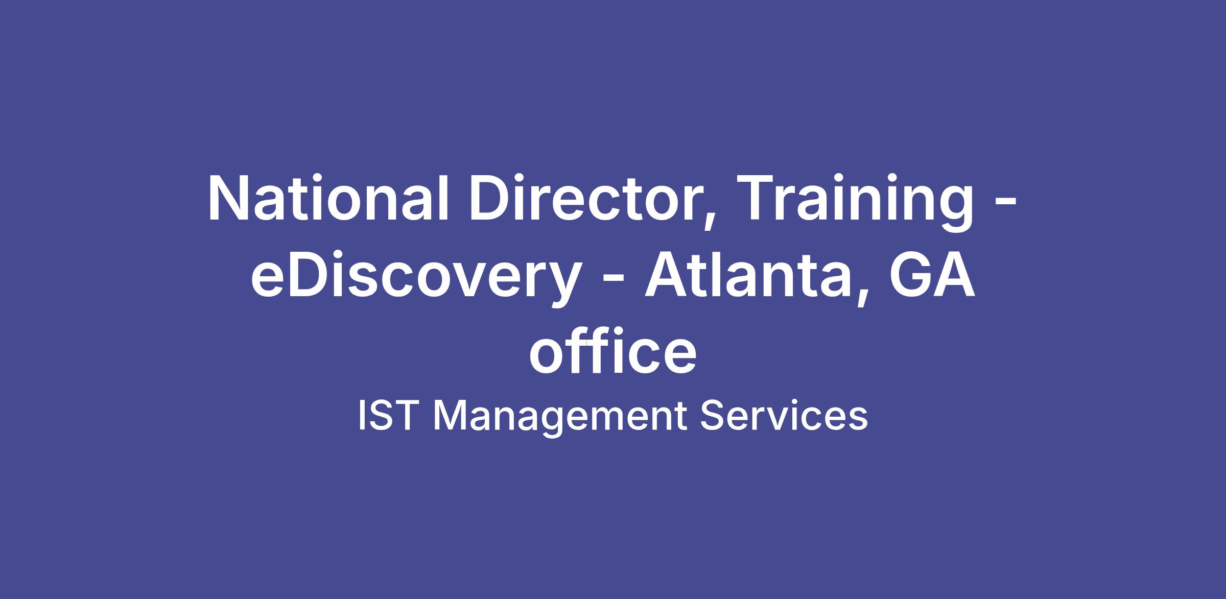 We’re seeking a passionate National Director of Training at IST Management who is a proactive and consistent problem solver, and can adapt to the needs of a high-growth, privately-owned company. The National Director of Training will be a critical thinker and able to design and execute successful and meaningful training of employees for sales and operations positions organization-wide across all verticals, with an emphasis on high level e-Discovery and litigation support sales. This position reports to the VP of Human resources and his highly collaborative with executives across all departments. The National Director will lead by example as a hands-on driver of consistent adherence to all established processes and improvement to systems and procedures.