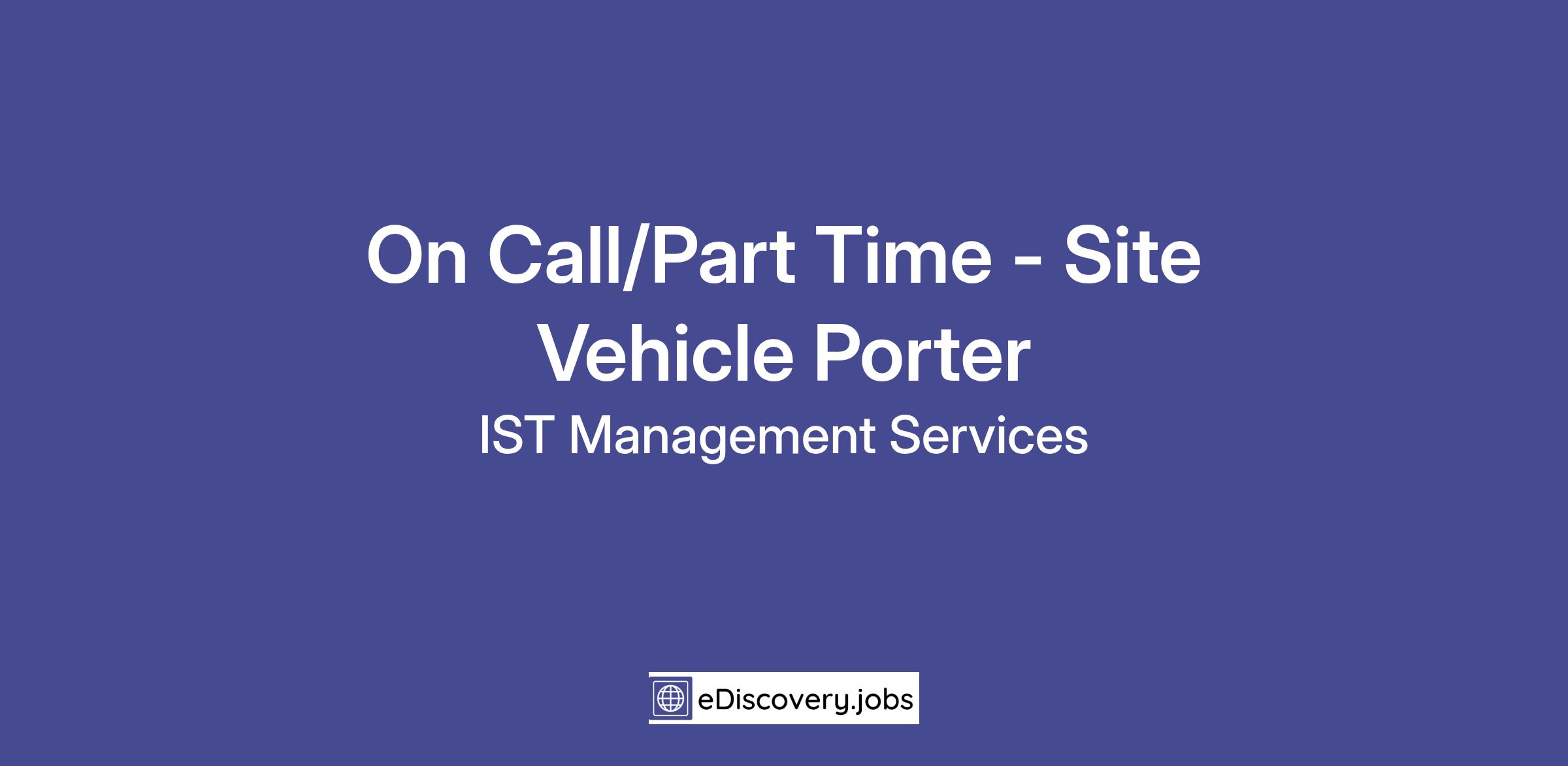 Consider a new, rewarding career today as a Part-Time (On-Call) - Site Vehicle Porter with IST Management Services! Ideal candidates will be ready to grow their career in facilities and office services, and to take advantage of internal opportunities at IST Management for training and development toward advancement into full time and management roles. Must have a valid California driver's license and clean driving record in order to be eligible to drive on behalf of client/IST.