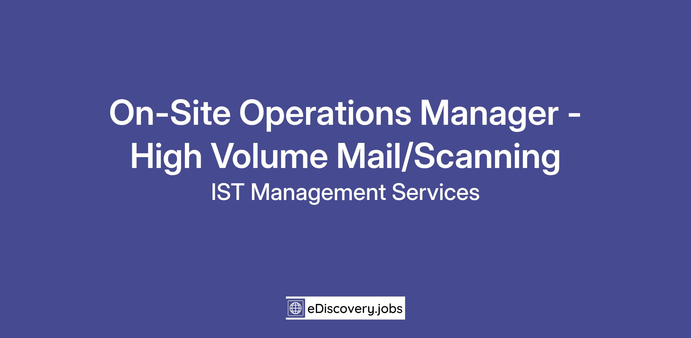 About IST Management:IST Management Services is the fastest-growing national facilities management company, specializing in Business Process Outsourcing (BPO) solutions. We provide innovative support in physical and digital information management, including Facilities Management, eDiscovery, and Electronic Document Services.