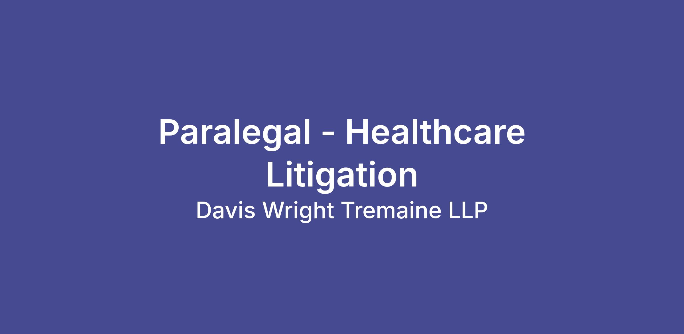 This is an exciting opportunity to work for one of the top law firms in the U.S.! Davis Wright Tremaine LLP is looking for a Paralegal – Healthcare Litigation to join our team in our Sacramento office.