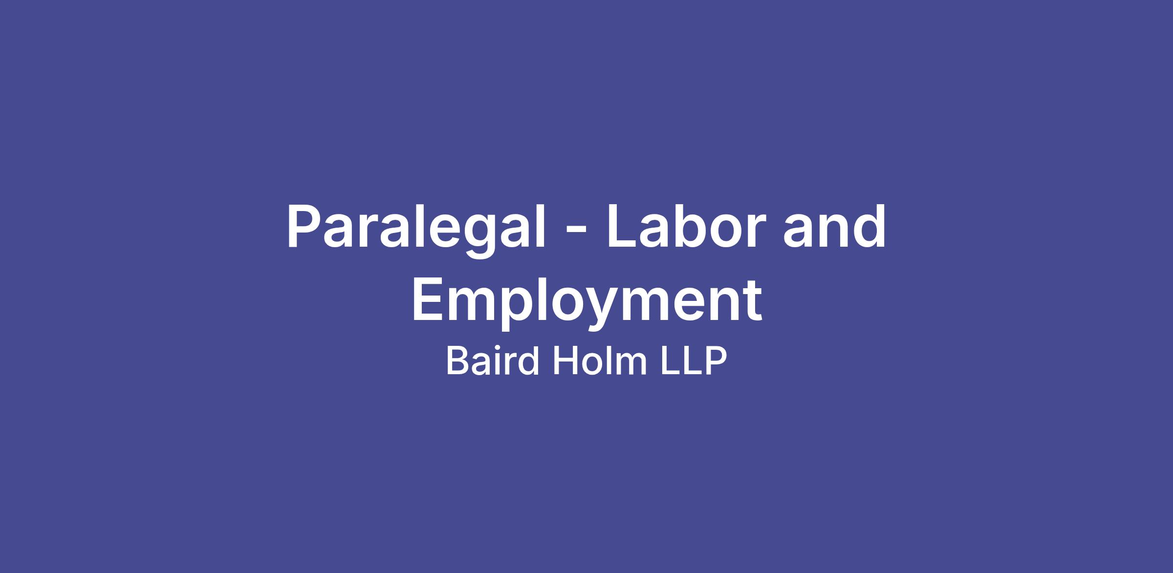 Baird Holm LLP is adding another full time Paralegal with Litigation experience to our world class Labor and Employment team! You will have the opportunity to work with our Labor & Employment Litigation Section collaborating with our attorneys and trial teams in all aspects of case management at both the state and federal levels, as well as arbitrations, ranging from single-plaintiff actions to large, multi-plaintiff class actions.