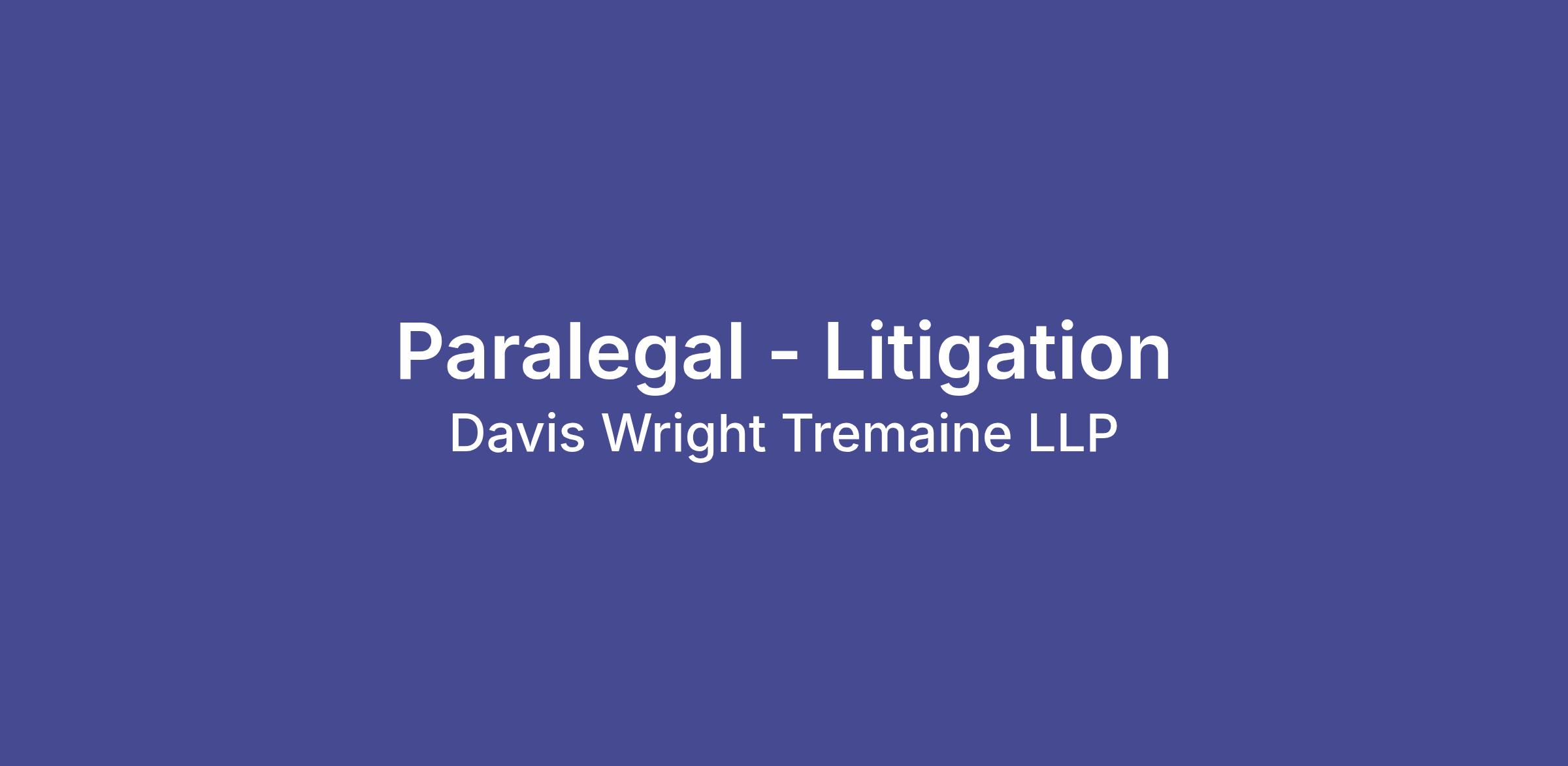 This is an exciting opportunity to work for one of the top law firms in the U.S.! Davis Wright Tremaine LLP is looking for a Paralegal - Litigation to join our team in our Seattle office.