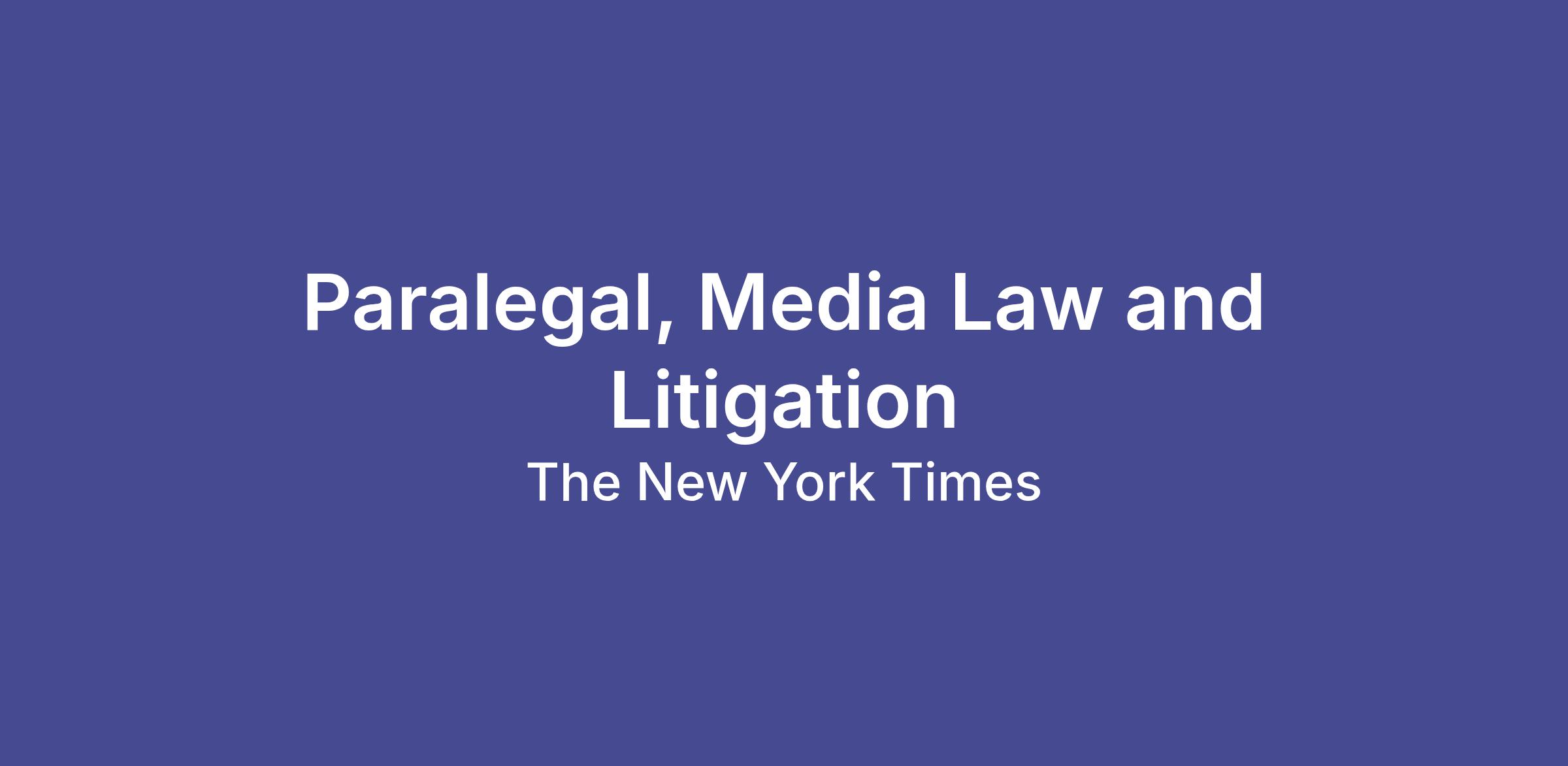 The New York Times Company seeks an experienced paralegal to join its Legal Department. The paralegal will play an important role in the Media Law and Litigation team, which represents the company in intellectual property, media law, and commercial litigation matters. Because the department handles much of its litigation in-house, the position requires someone with the experience and ability to support hands-on litigation and discovery work.