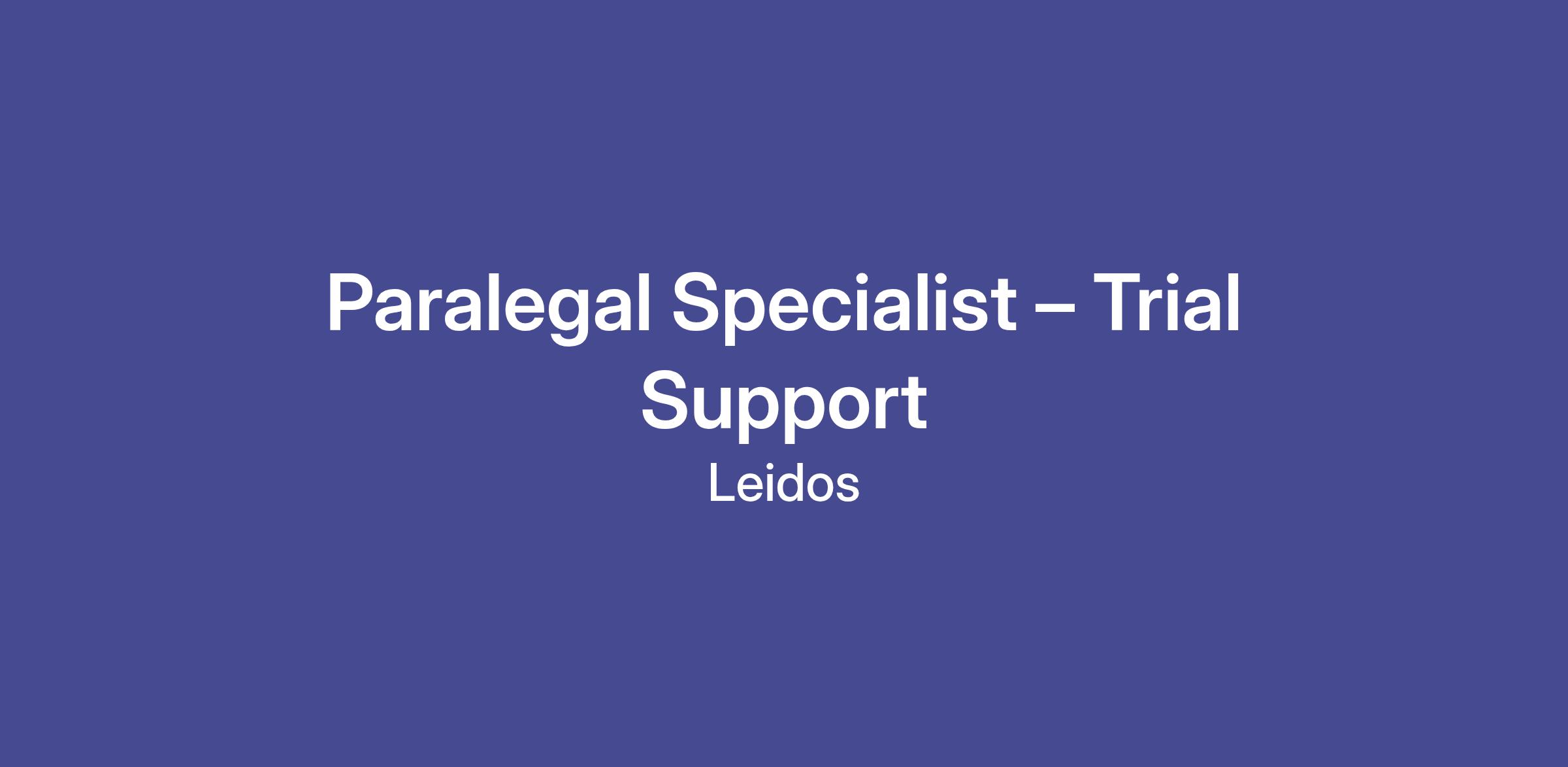 The Litigation Support Team at Leidos currently supporting the U.S. Department of Justice (DOJ) in Los Angeles, CA has an opening for a Paralegal Specialist – Trial Support to work in a downtown Los Angeles, CA DOJ office performing litigation support duties via said role. This is an exciting opportunity to use your experience helping the U.S. Department of Justice achieve their mission.