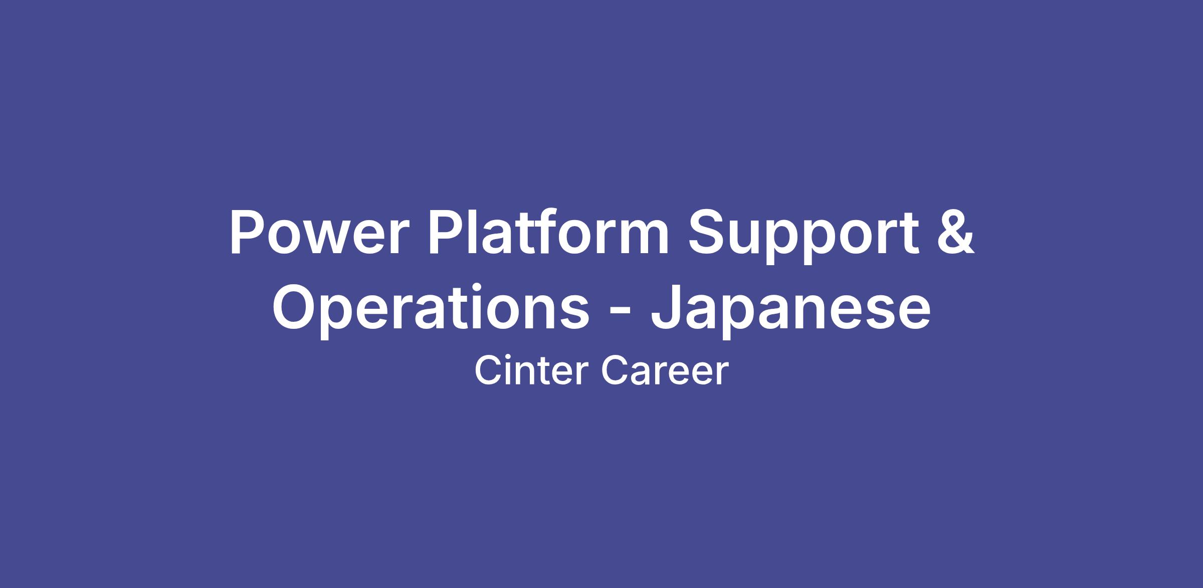 ▶︎ Qualifications ・Minimum 2 years of hands-on experience supporting Microsoft 365 operations ・Minimum 2 years of hands-on experience supporting Microsoft Power Platform solutions ・Ability to read, understand, and modify existing Power Apps and Power Automate flows ・Experience supporting Power Automate Desktop (RPA) environments is preferred ・Understanding of Dataverse and Power Platform environment governance concepts ・Strong coordination and cross-team communication skills ・Business-level proficiency in Japanese
